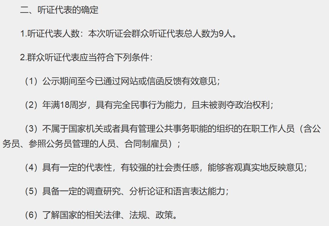 目前听证代表征集已经结束,不过具体听证时间、听证地点尚未公布。