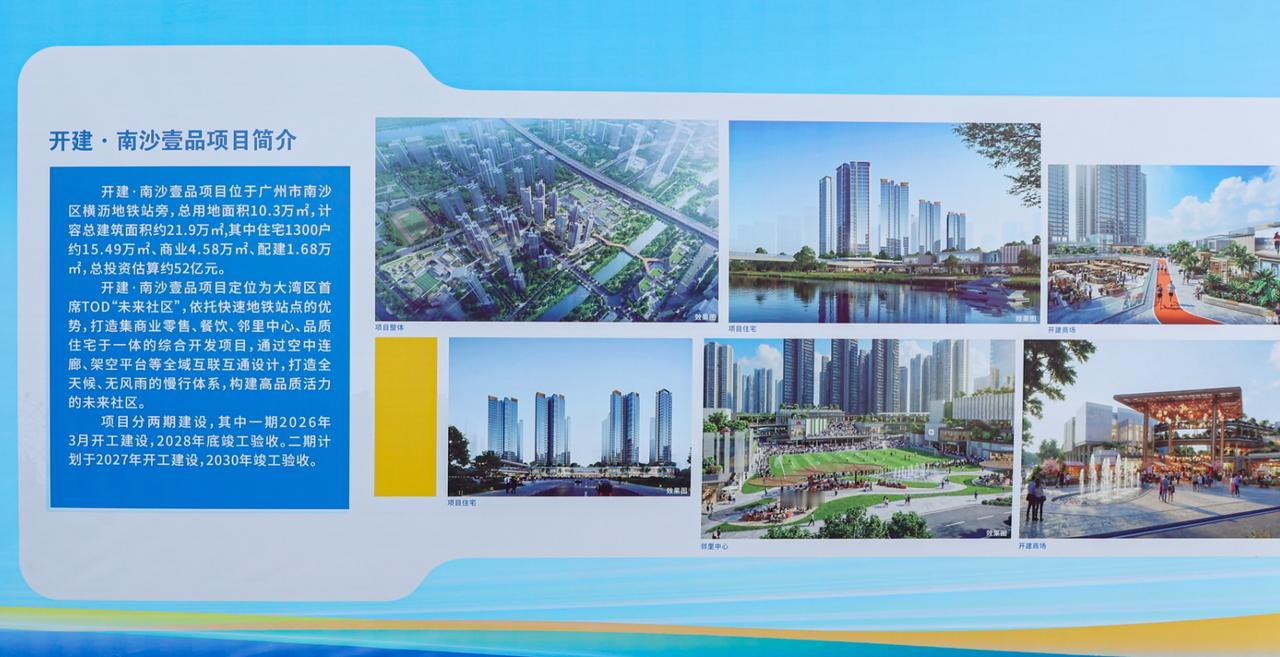 根据介绍,项目定位为“大湾区首席TOD未来社区”。该项目为18号线地铁上盖,可速联广州主城区,践行复合型城市空间开发理念,打造集居住、办公、商业、教育、休闲、社交等功能于一体的综合性生活圈,实现“下楼即公园、出街即商业、转身即地铁、目送即学校”的一站式高阶居住体验。项目配备2.2万方商业和公共服务配套,汇聚品质餐饮、潮流零售等多元业态,将快速激活横沥岛消费市场;同时构建空中连廊、架空平台等多维立体空间,实现慢行无界互联,朝着便利出行、优质生活服务的方向稳步推进,不仅能优化区域交通格局、激活枢纽经济活力,更能成为南沙产城融合的核心引擎。