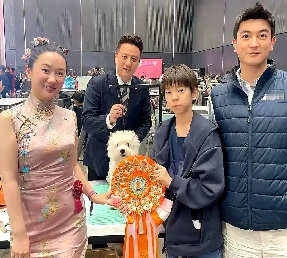 她穿着粉色旗袍,亲自牵着11个月大的贵宾犬“霍蜜蜡”,直接杀进泰国公主杯国际犬展。杜江和儿子嗯哼就在台下当啦啦队,摇旗呐喊,那场面比演唱会还嗨。