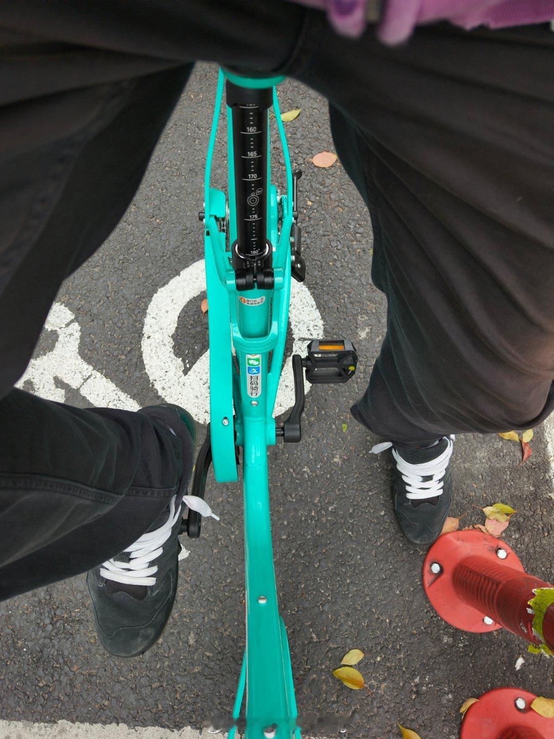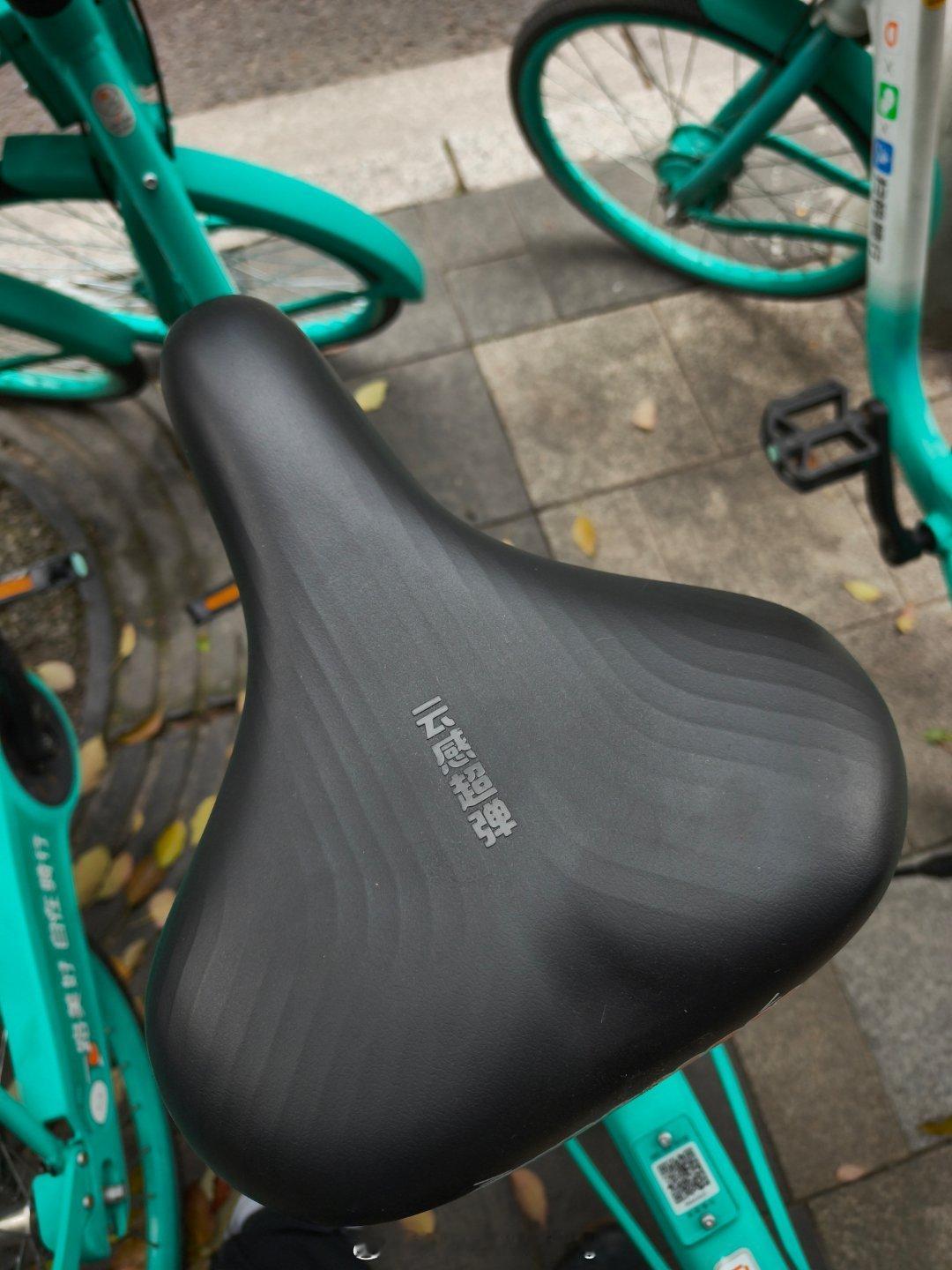 早上扫到个新款式的单车真是开心,坐垫厚实承托到位,甚至还有小减振结构。座杆拉到标称180cm的位置竟然比隔壁标称185cm都高,骑着自然是更轻松省力。