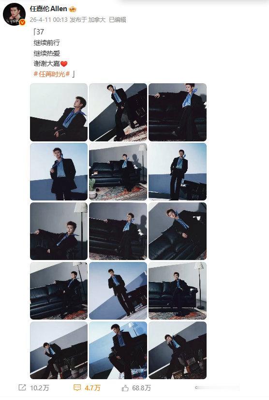 任嘉伦37岁状态任嘉伦37岁庆生照 任嘉伦37岁生日发文:“ 继续前行,继续热爱,谢谢大嘉”,生日快乐!
