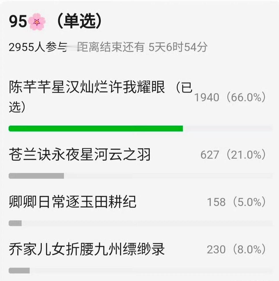 历代爆剧花投票,露思直接断层了,陈芊芊星汉许我三部曲一出来,投票结果毫无悬念