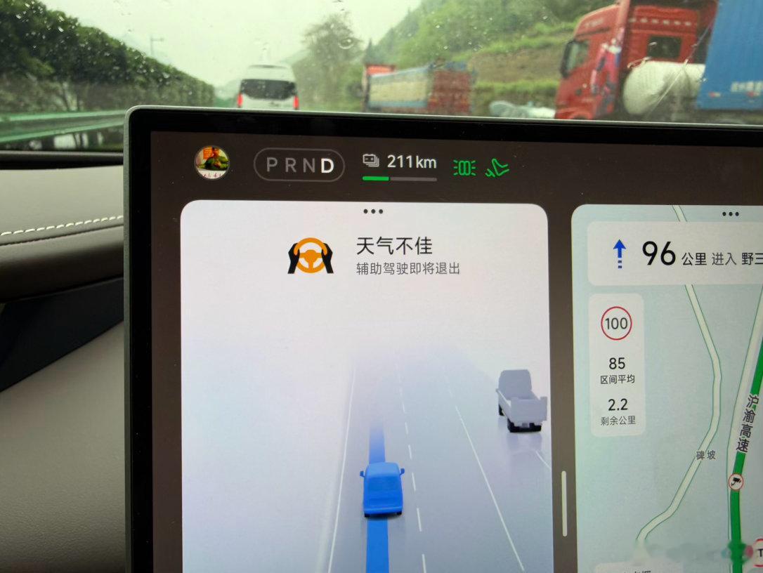 小米su7的智能辅助驾驶安全策略非常谨慎!天气不佳(大雨天气),不能使用!对我这