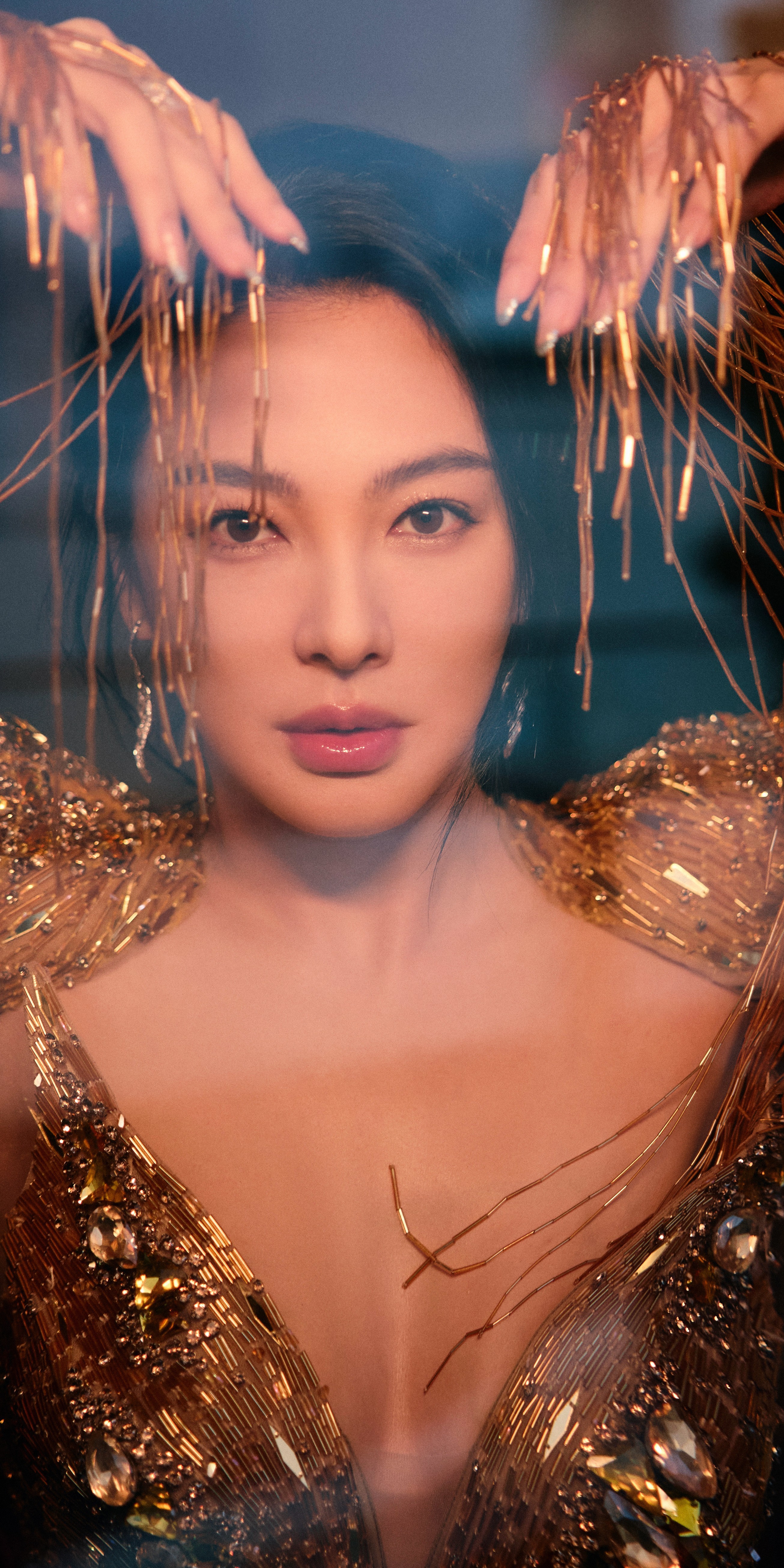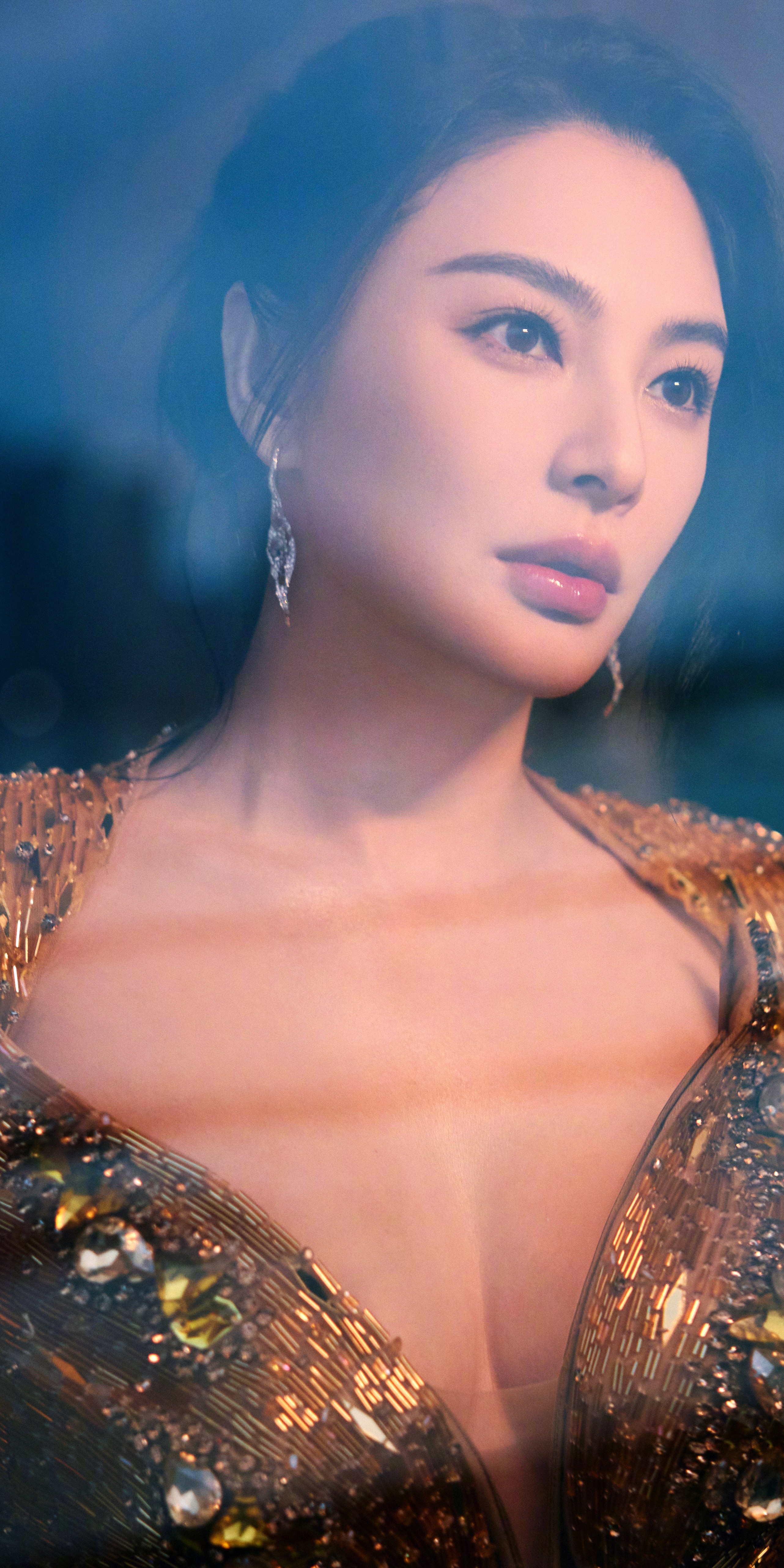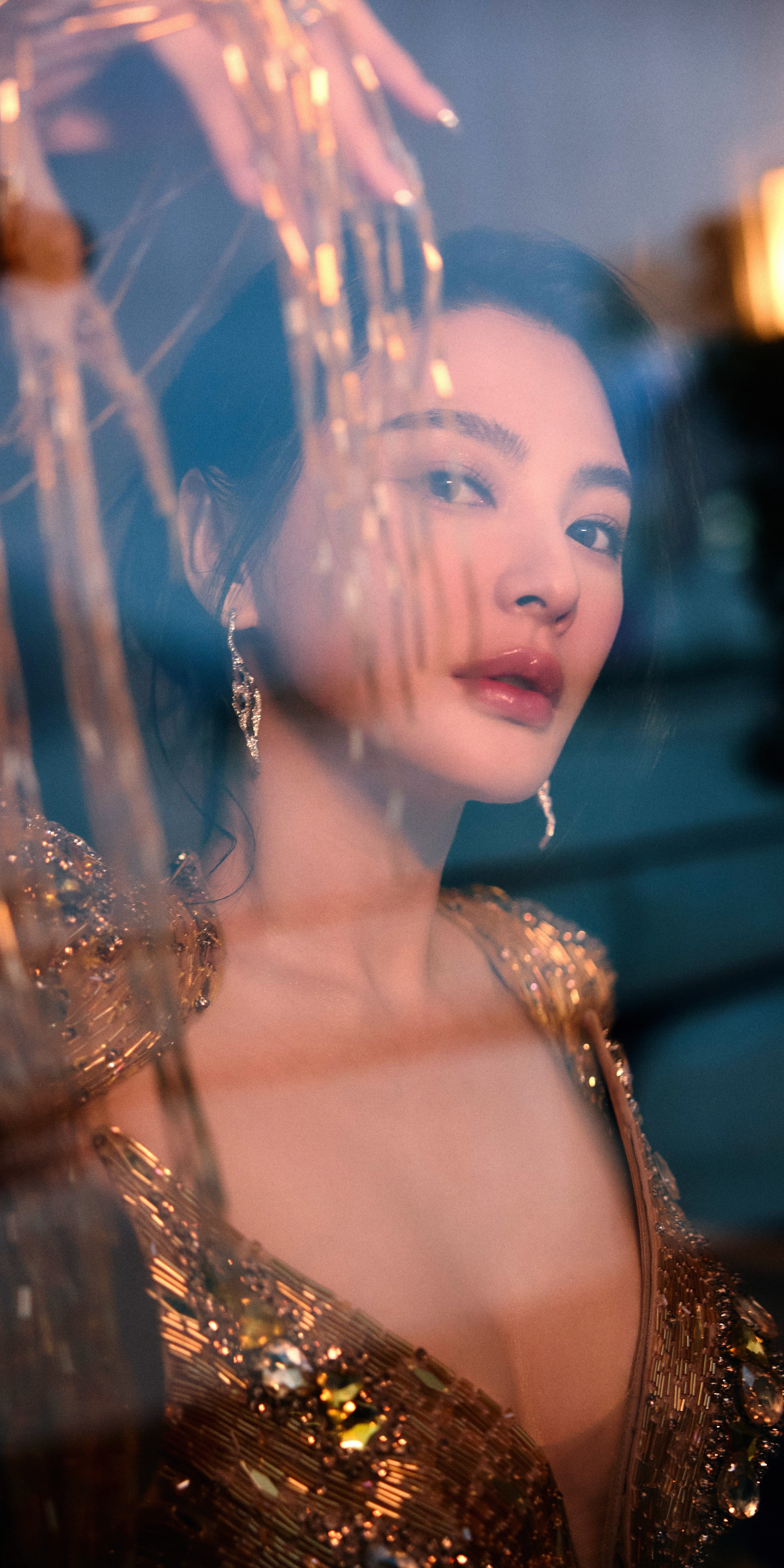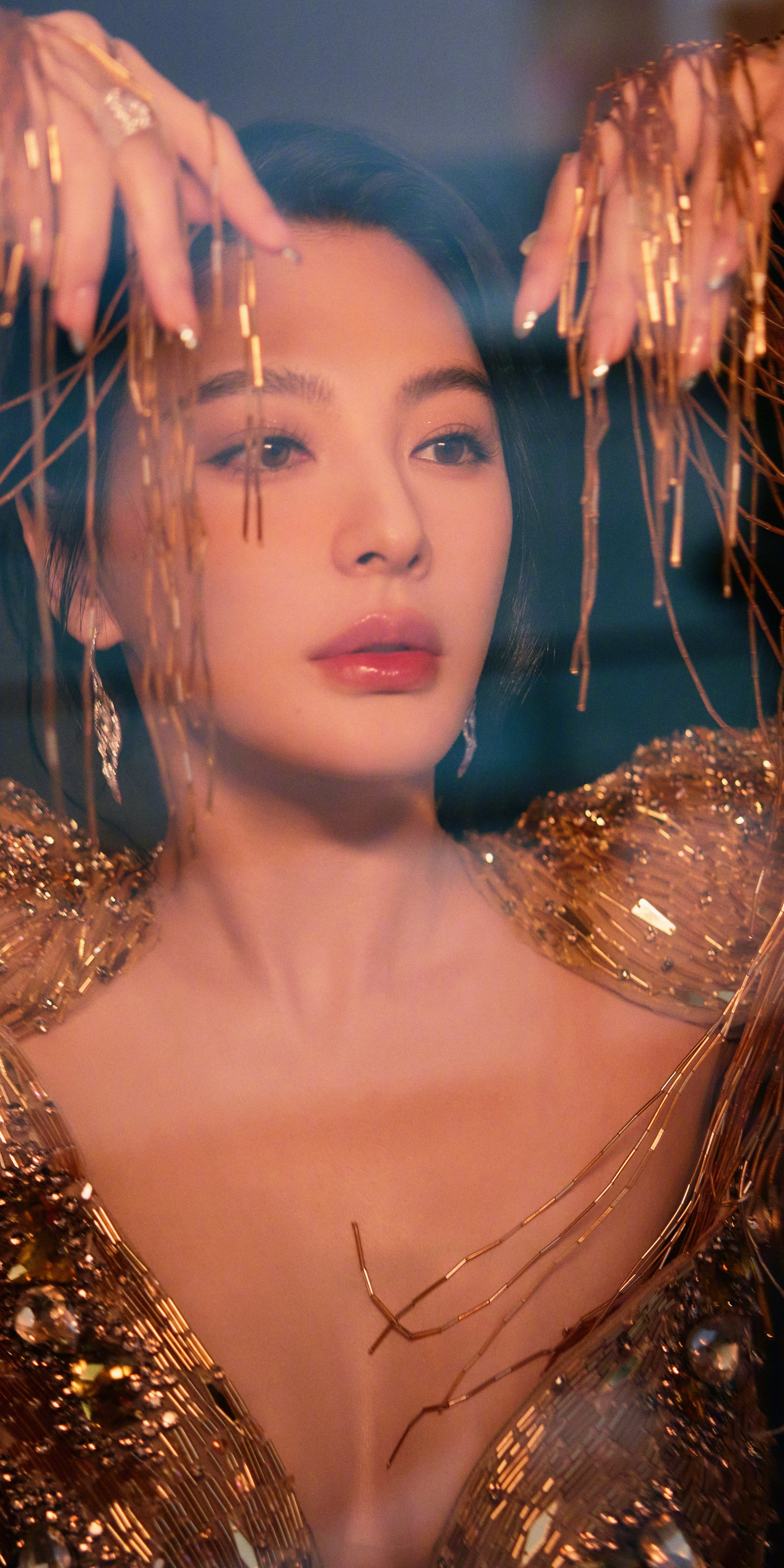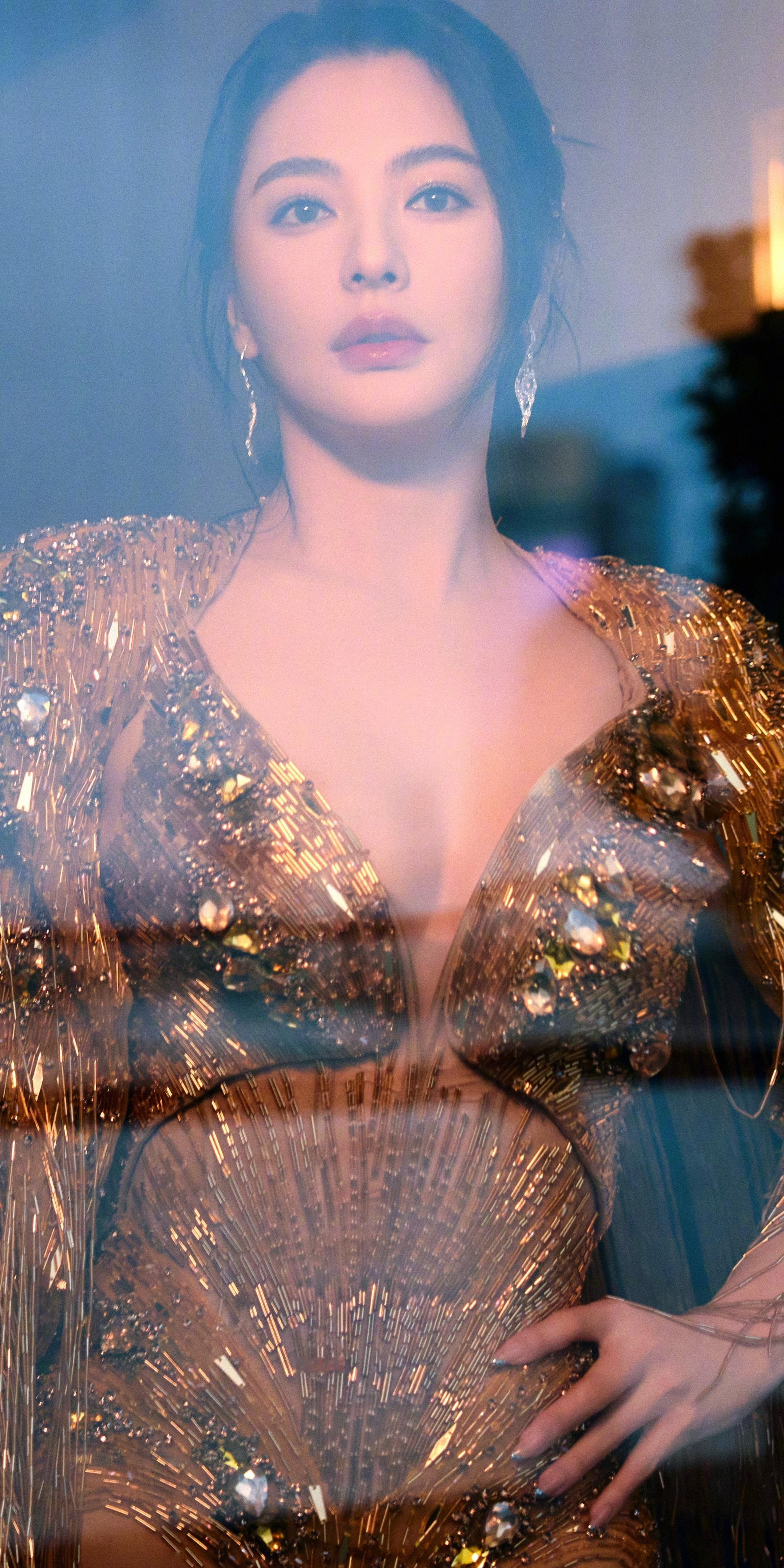 张雨绮穿搭壁纸:金色礼服,无限明媚。张雨绮