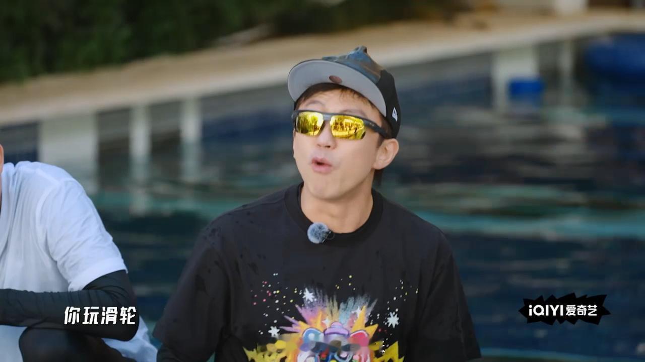马𬱖这是来录综艺还是来装修监工的?坐着玩轮滑的样子太好笑了,水上游戏上不来硬撑