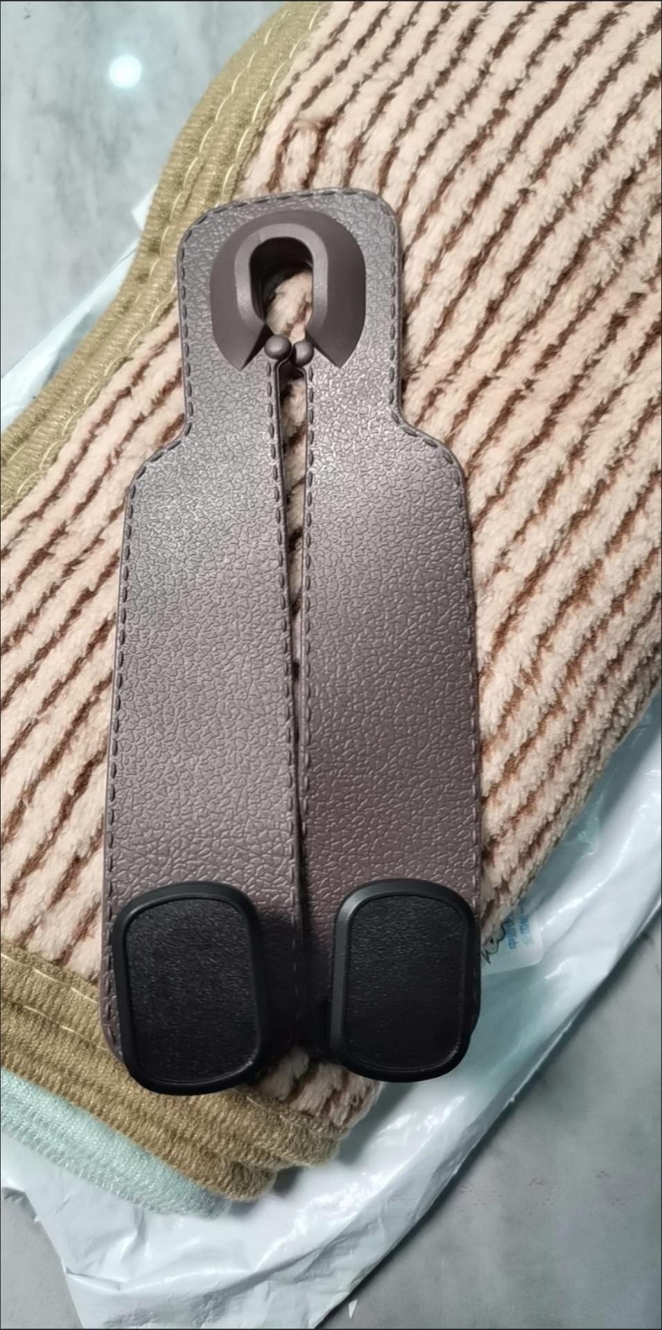 后来看车友分享,入手了这种可折叠挂钩,直接卡在头枕两根金属杆上。承重能挂5公斤。现在老婆的包、孩子的零食袋、打包的外卖,统统往上一挂,后排地板干干净净。