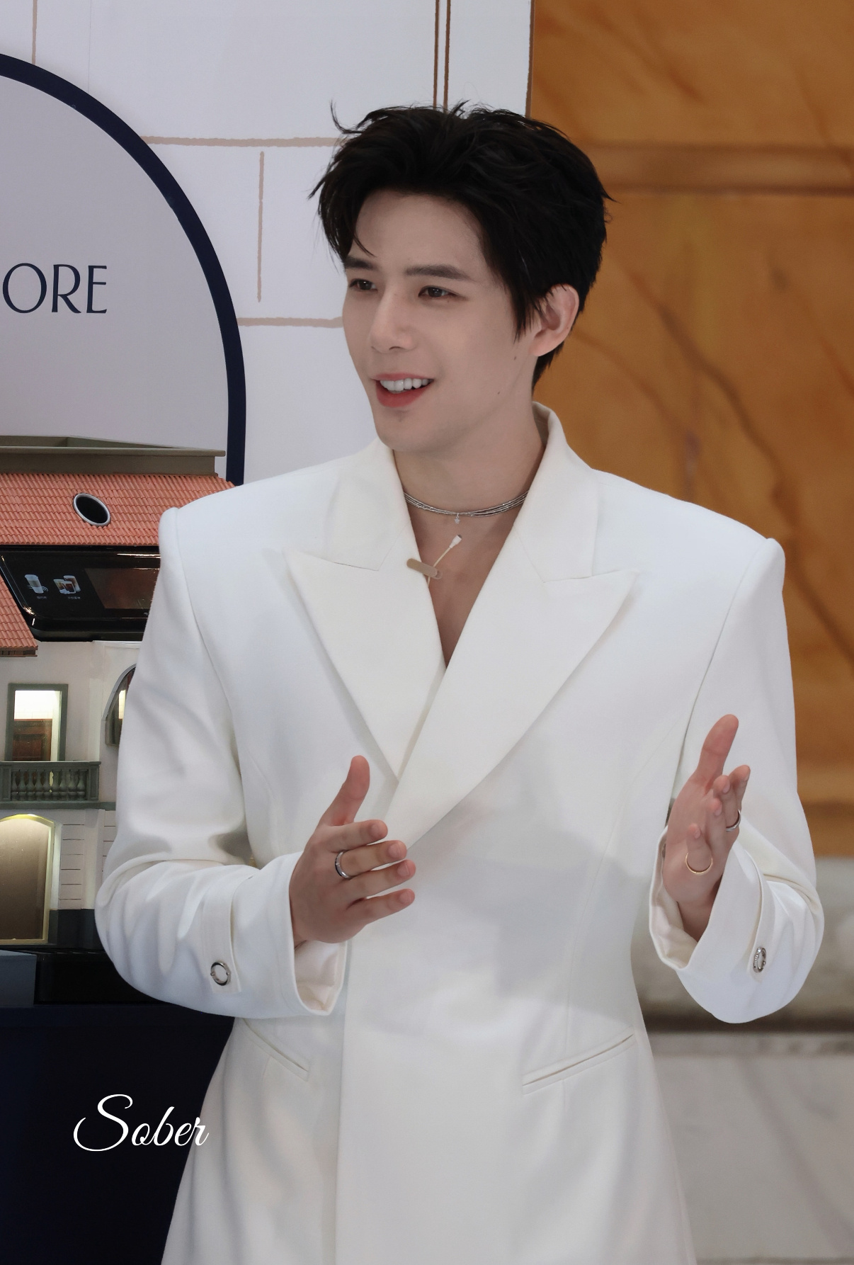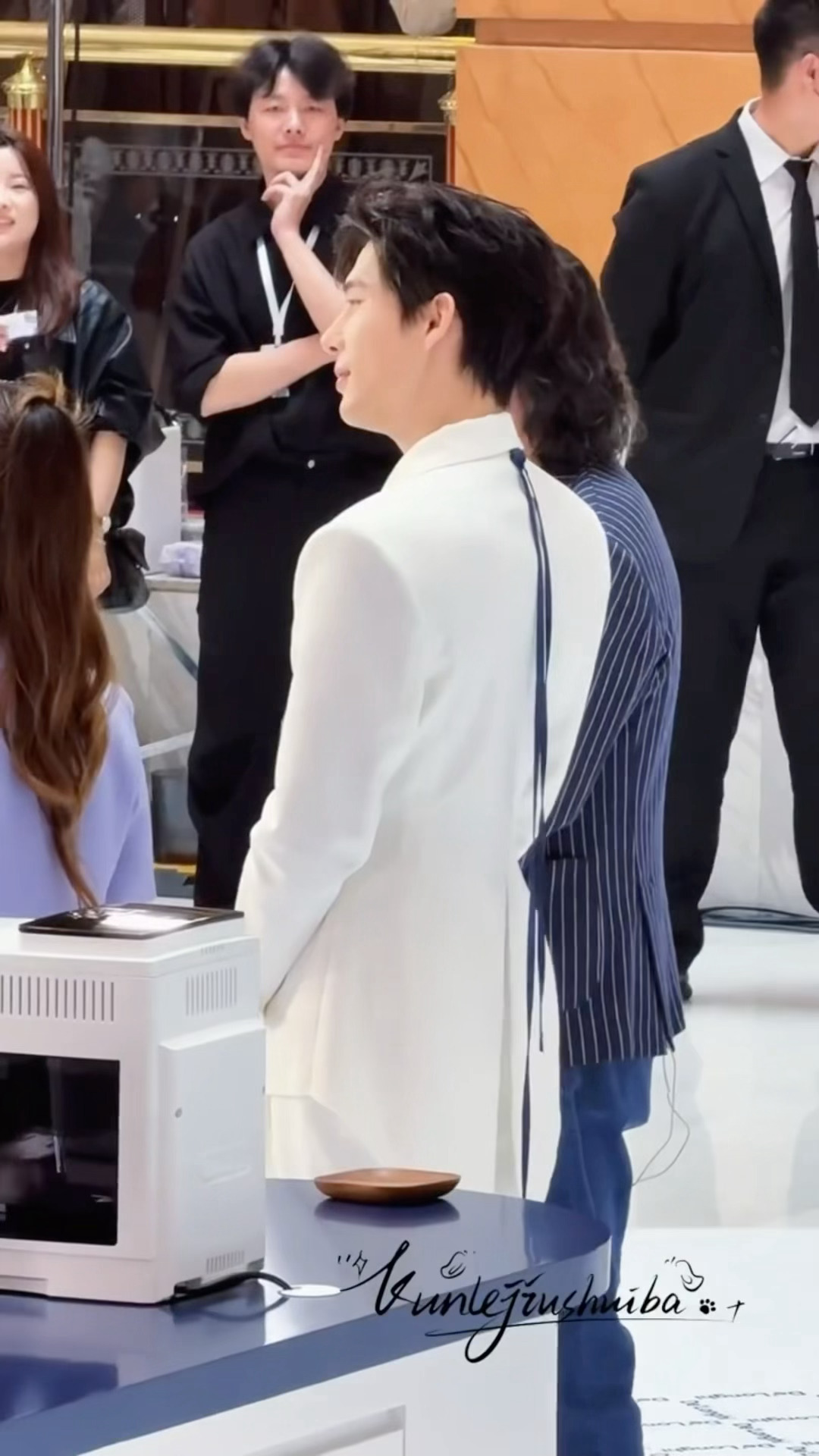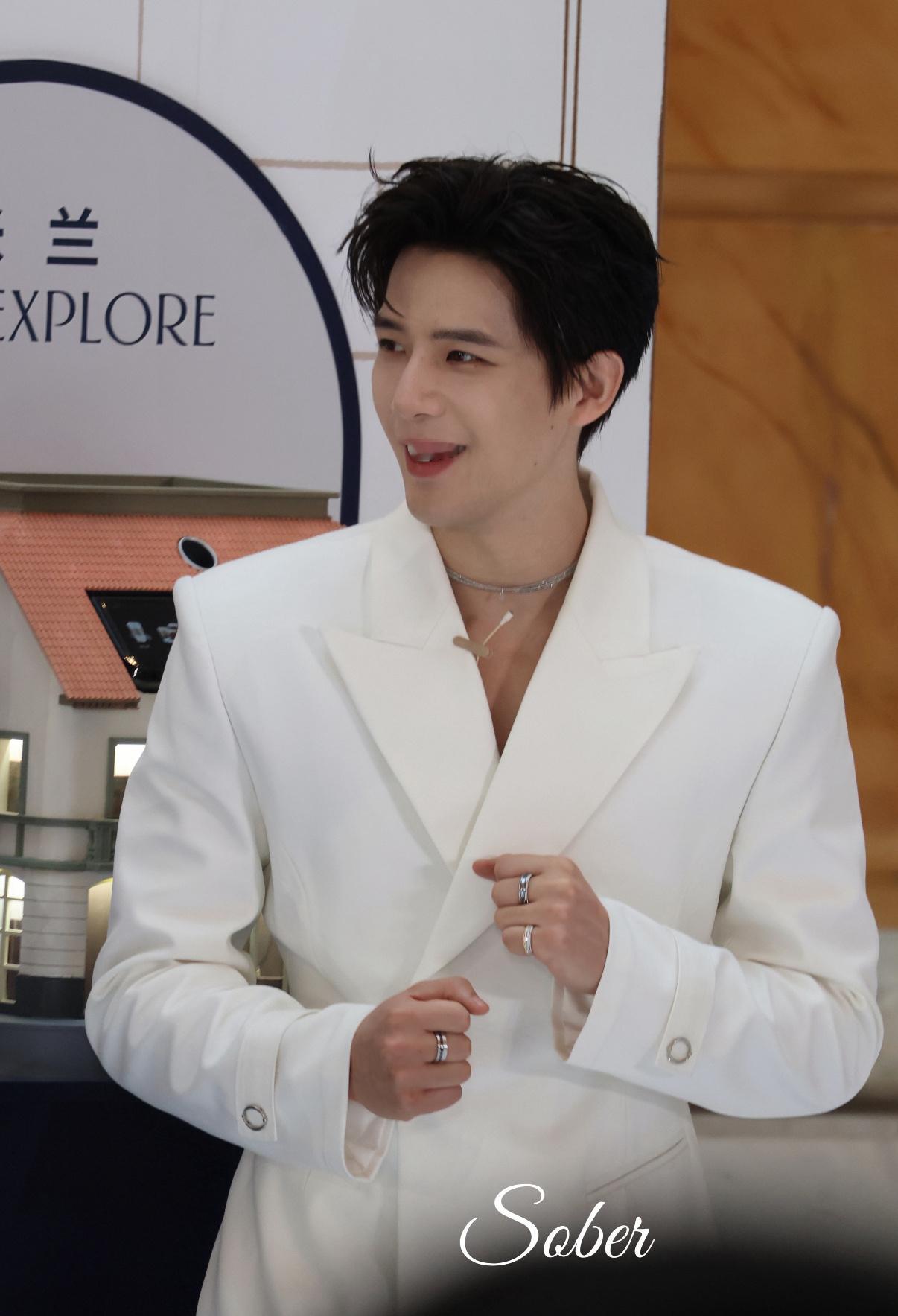王安宇背头镂空白色西装造型