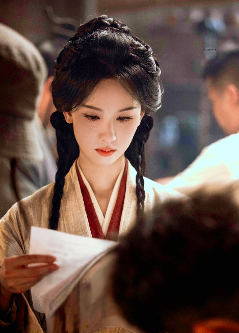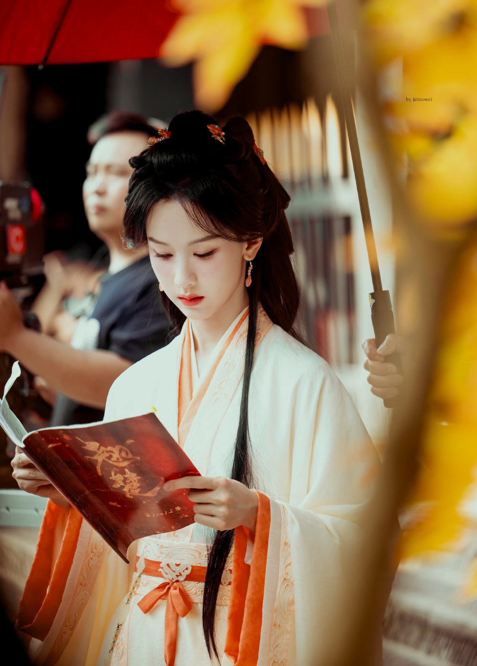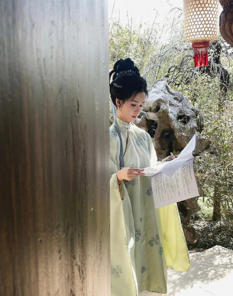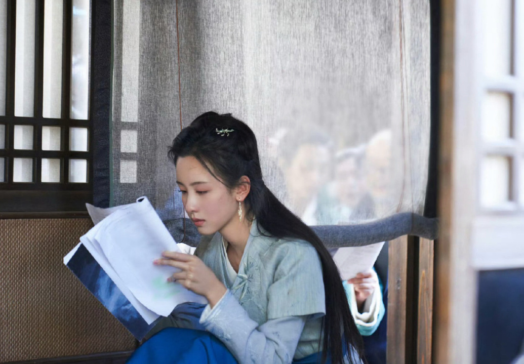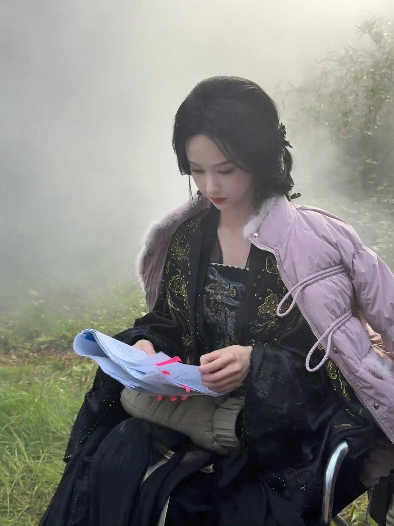 收集在每个等戏间隙都在默默熟悉剧本背台词的嘟嘟陈都灵片场读剧本照