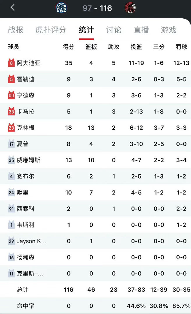 球员层面伦纳德全场出战拼尽全力,交出稳定攻防数据,个人攻坚终结、锋线防守兜底都做到位,依旧是球队攻防最可靠的核心支柱;琼斯、科林斯等角色球员虽然有亮眼发挥,但球队整体进攻火力断层、阵容轮转问题暴露彻底,全队进攻点分散、串联节奏混乱,没能形成有效的团队攻防体系。