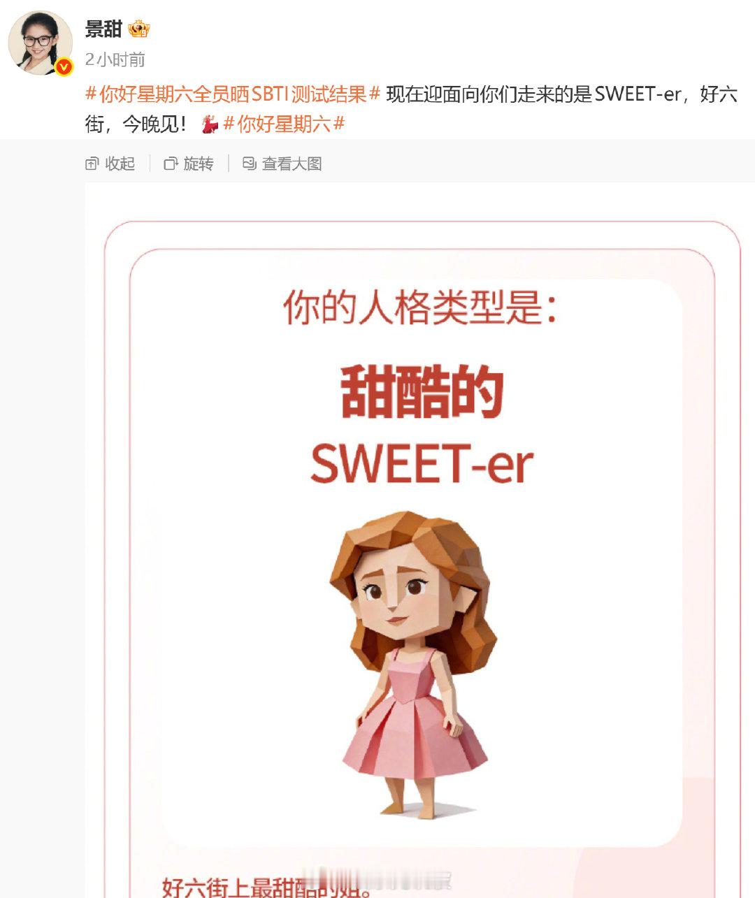 你好星期六全员晒SBTI测试结果景甜、张新成、孔雪儿… 好六全员 SBTI 人格大公开啦!你好星期六