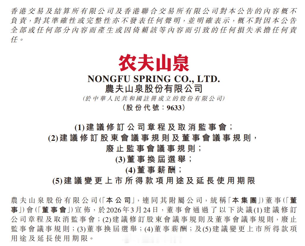 农夫山泉发布了董事换届选举相关公告,钟睒睒之子已任其助理