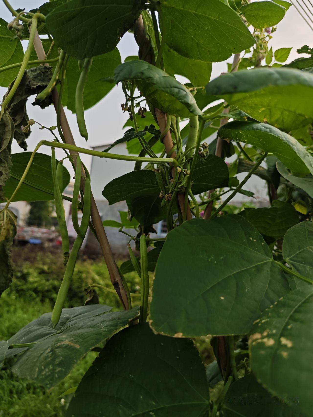 吃完饭就带她一家子去我的菜园里看看四季豆和其它农作物。