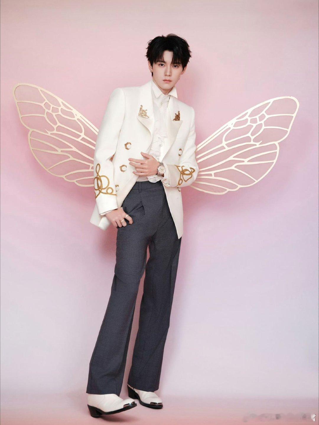 周翊然周翊然背了金色翅膀 白西装加金翅膀,周翊然今天这套造型可以直接演现偶大结局