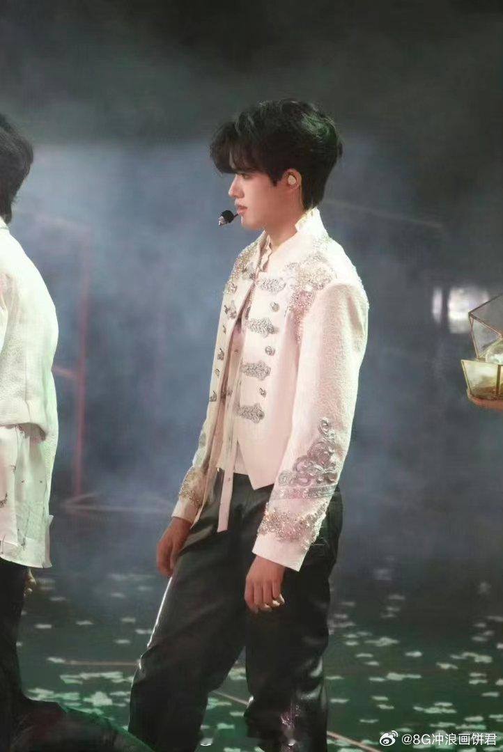张极白色拿破仑夹克 张极在澳门演唱会的开场造型用心又出彩,白色拿破仑夹克凸显挺拔