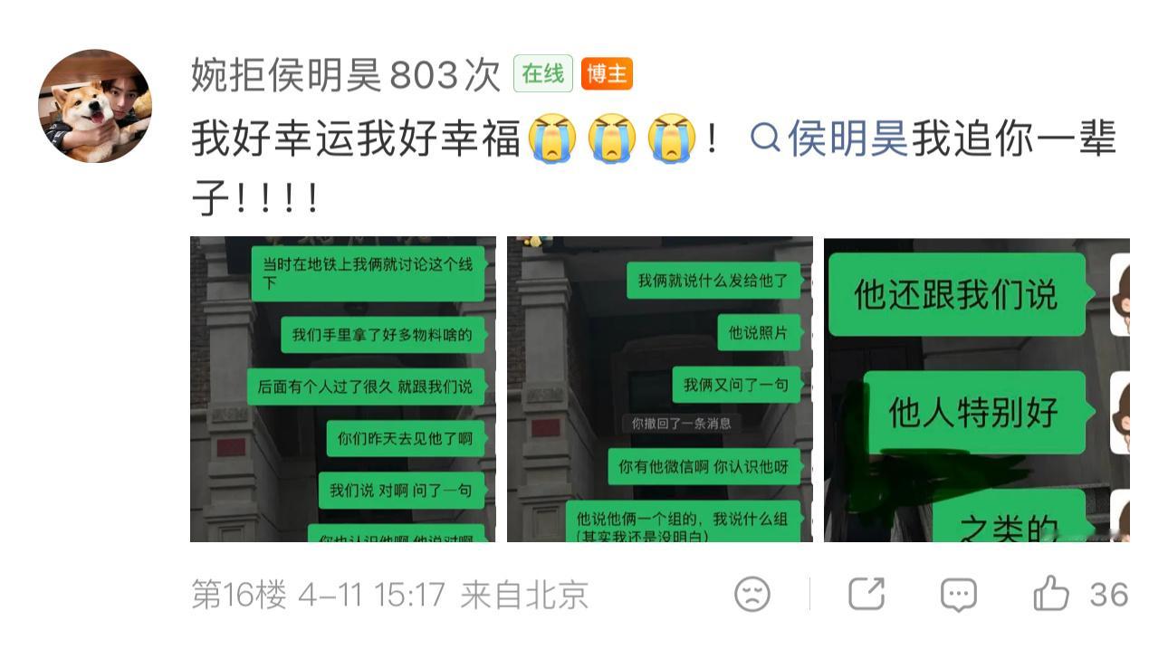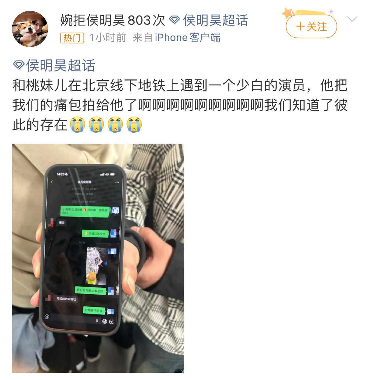 粉丝在地铁上偶遇了一位演员,没想到他竟然是侯明昊同组的!!!!于是这位演员老师就