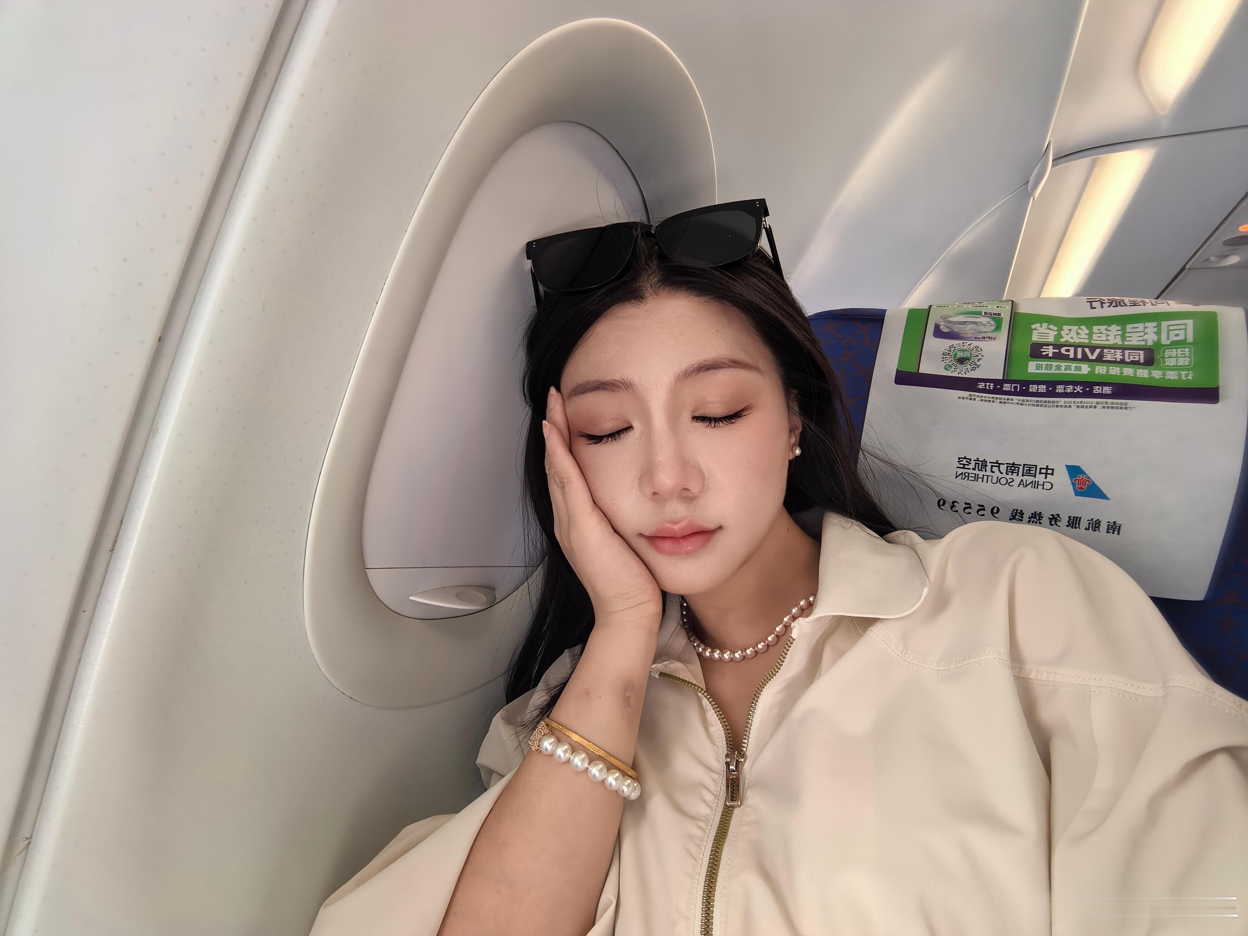 怡宝们,我登机了现在马不停蹄飞昆明空中飞人小怡要在路上补觉了🥱口罩墨镜全副武装