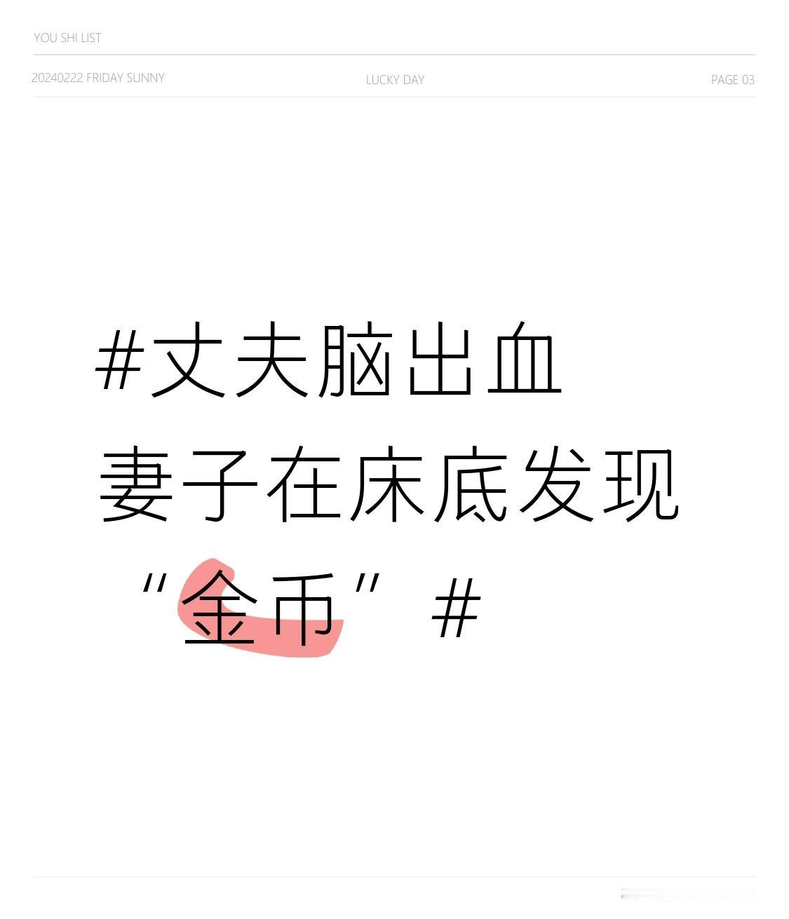丈夫脑出血妻子在床底发现“金币” 河南李大叔脑出血,这病让他生活不能自理。祸不单行,妻子照顾他时,在床底发现超200件金币、纪念币和邮票。乍一看金光闪闪,还有限量版噱头,单个2斤重呢。可仔细瞧,标着“Au.999”的金币,却印着“18mg”,真金就0.018克。用钳子剪开,里面是白色非贵金属。