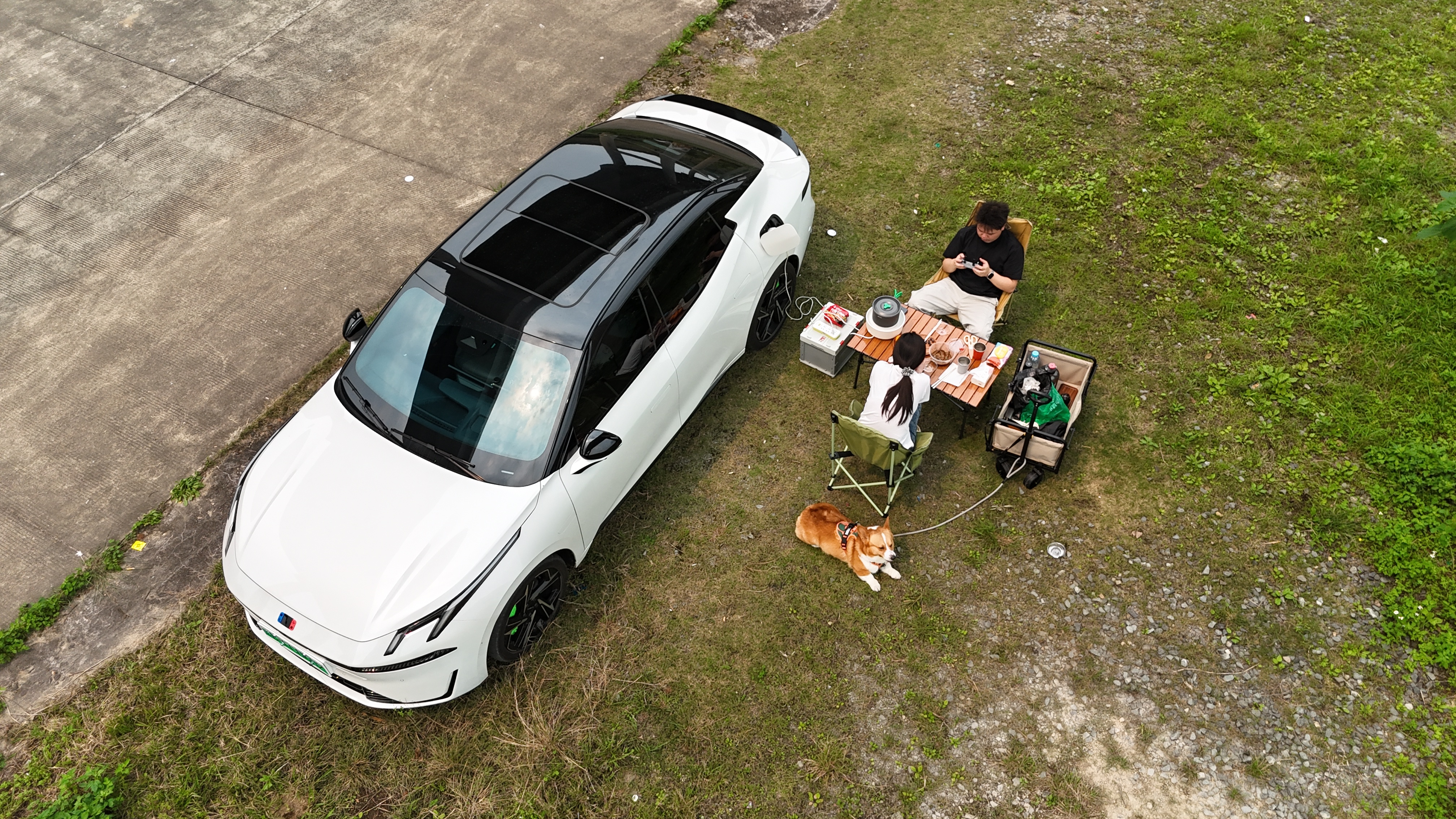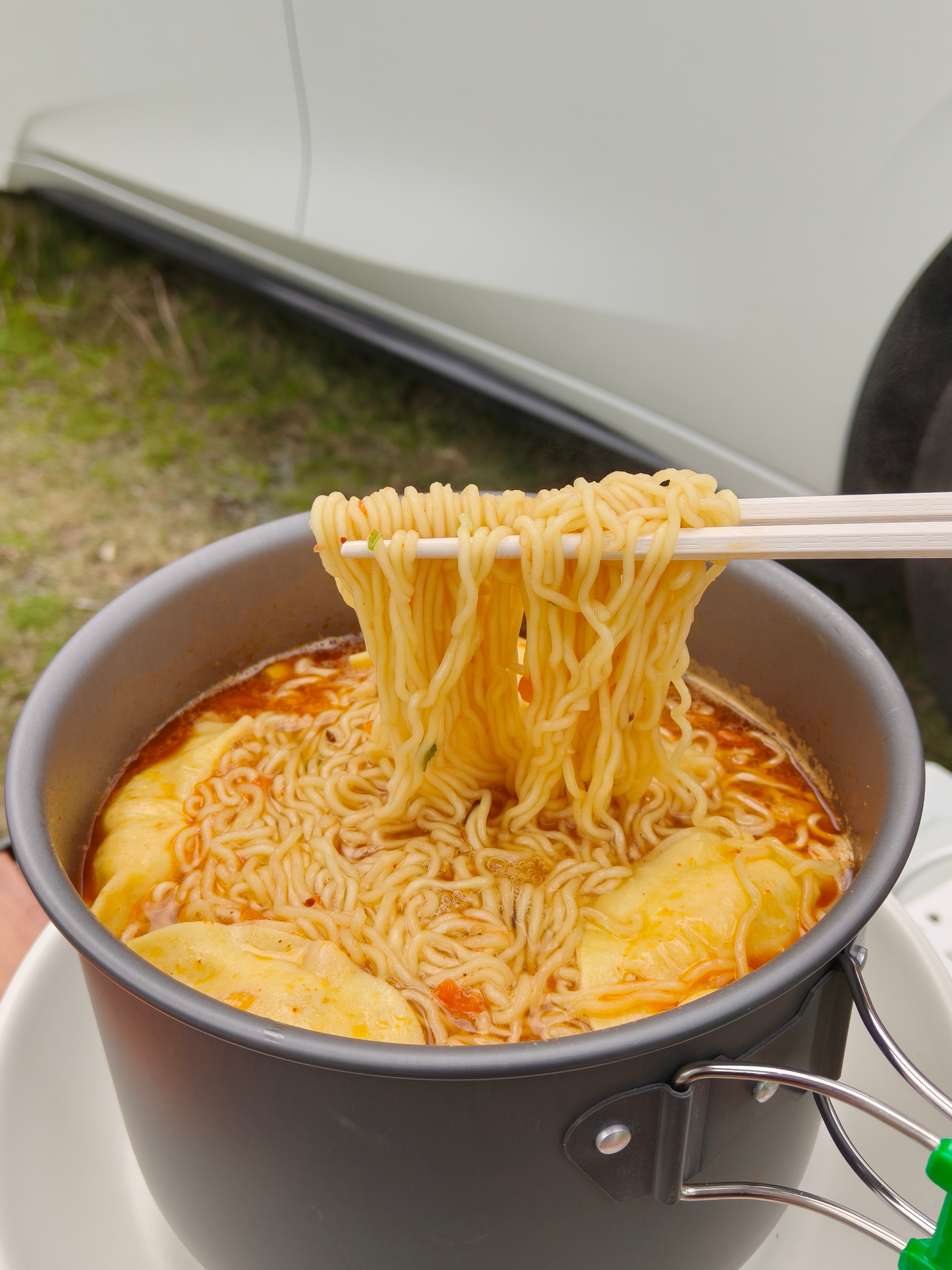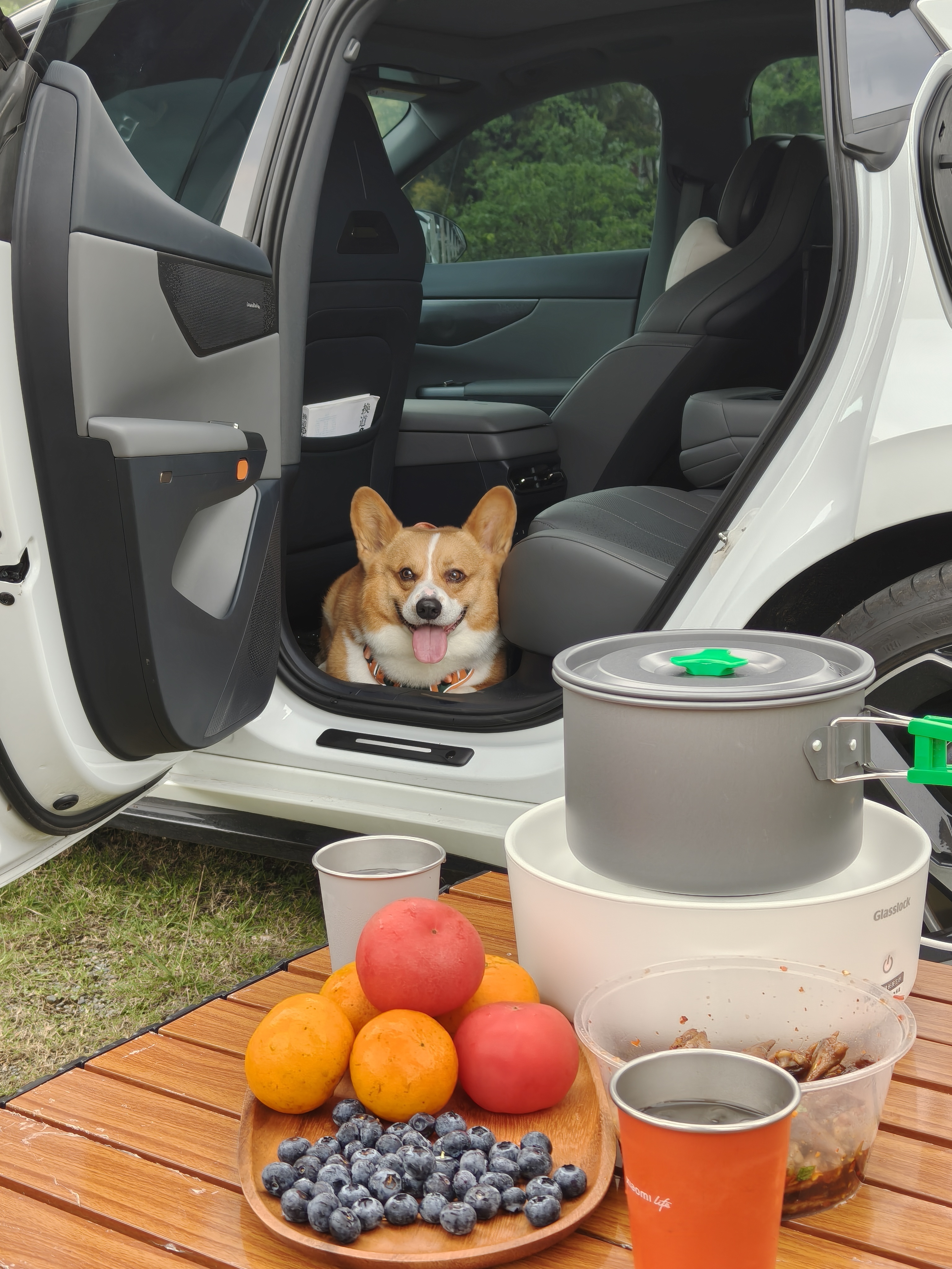露营初体验,一年前买的放电插座终于派上用场了,找个安静的地方小桌一架,再煮一锅韩