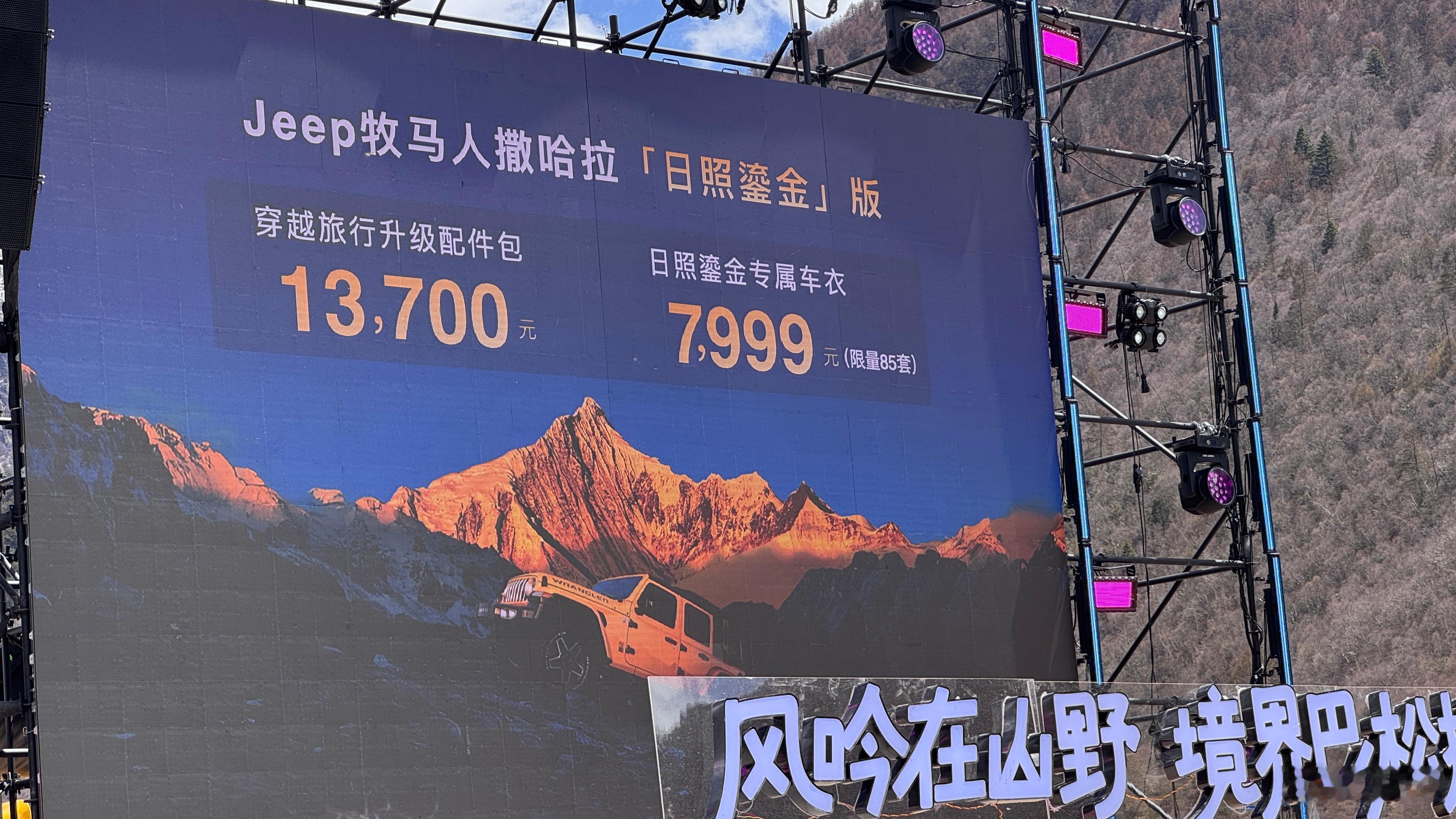 第三台是49.99万的撒哈拉「日照鎏金」版配价值13700元的穿越旅行升级配件包还有价值7999元的日照鎏金专属车衣
