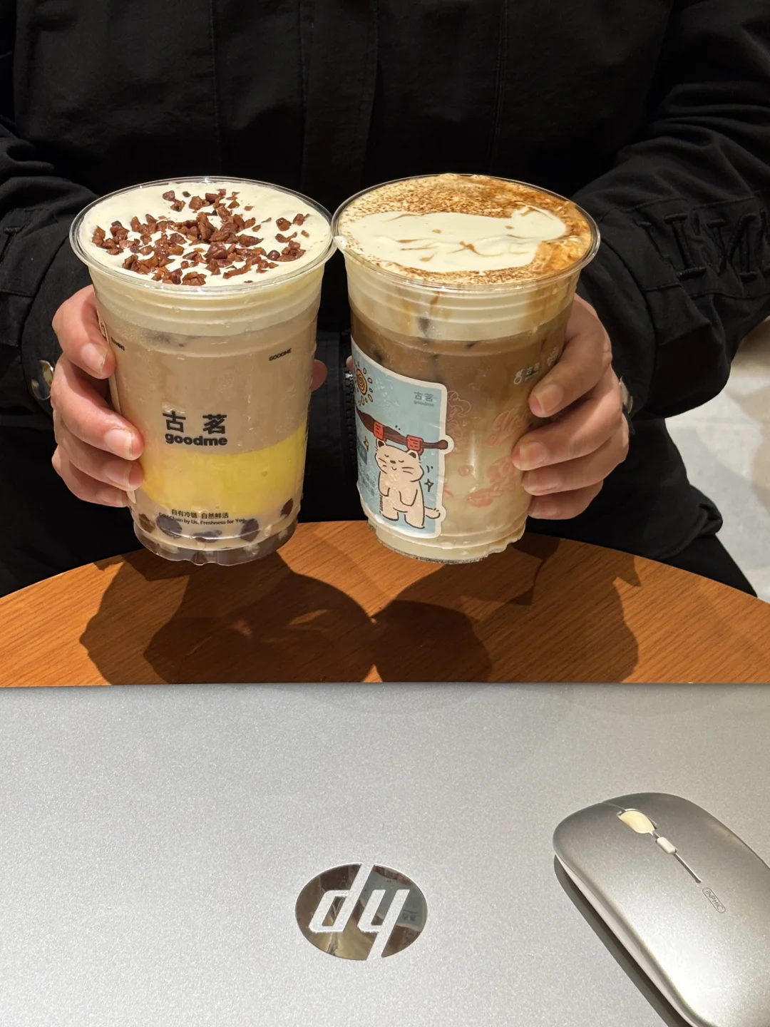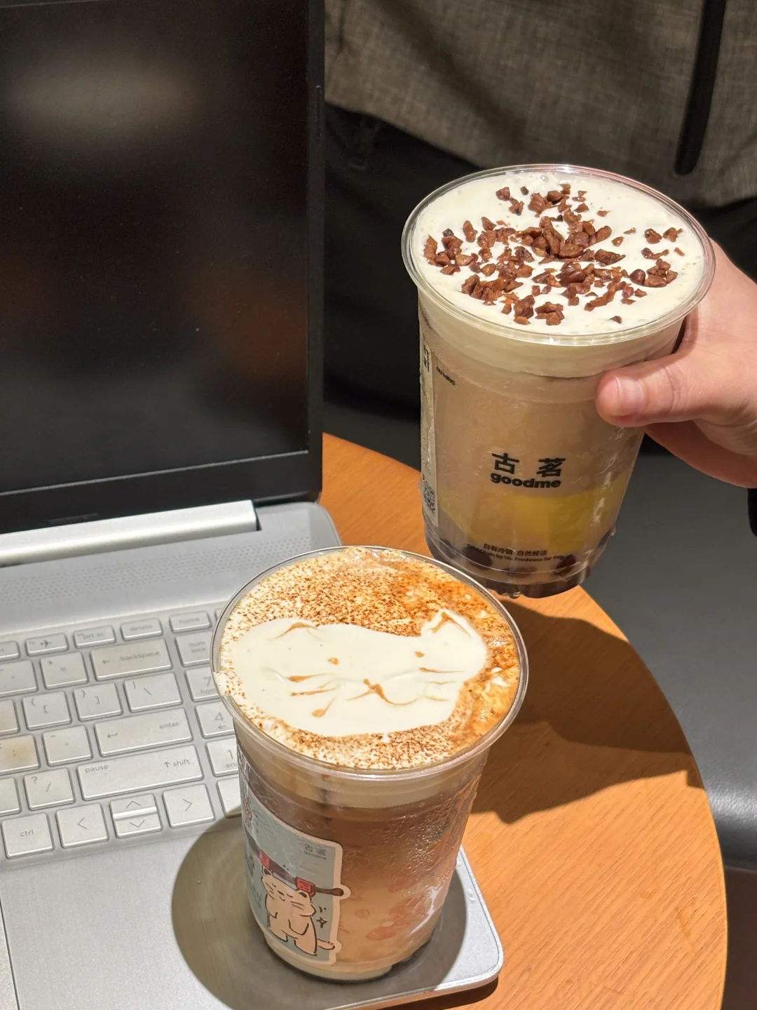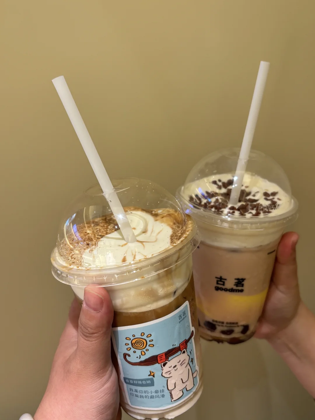 谁懂!拿牙签画古茗奶油顶,我画的猫🐹被男友说像怪兽,结果他画还要抄我作业hhh!但自己画的丑猫喝着超治愈,动物奶油绵密到化🐈☕️