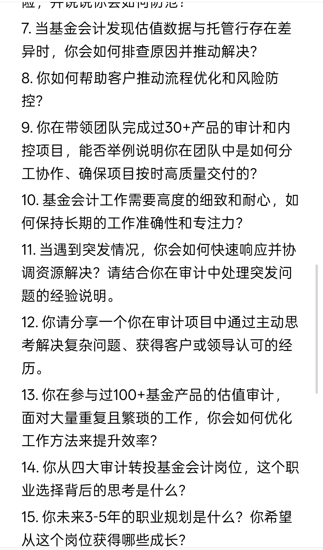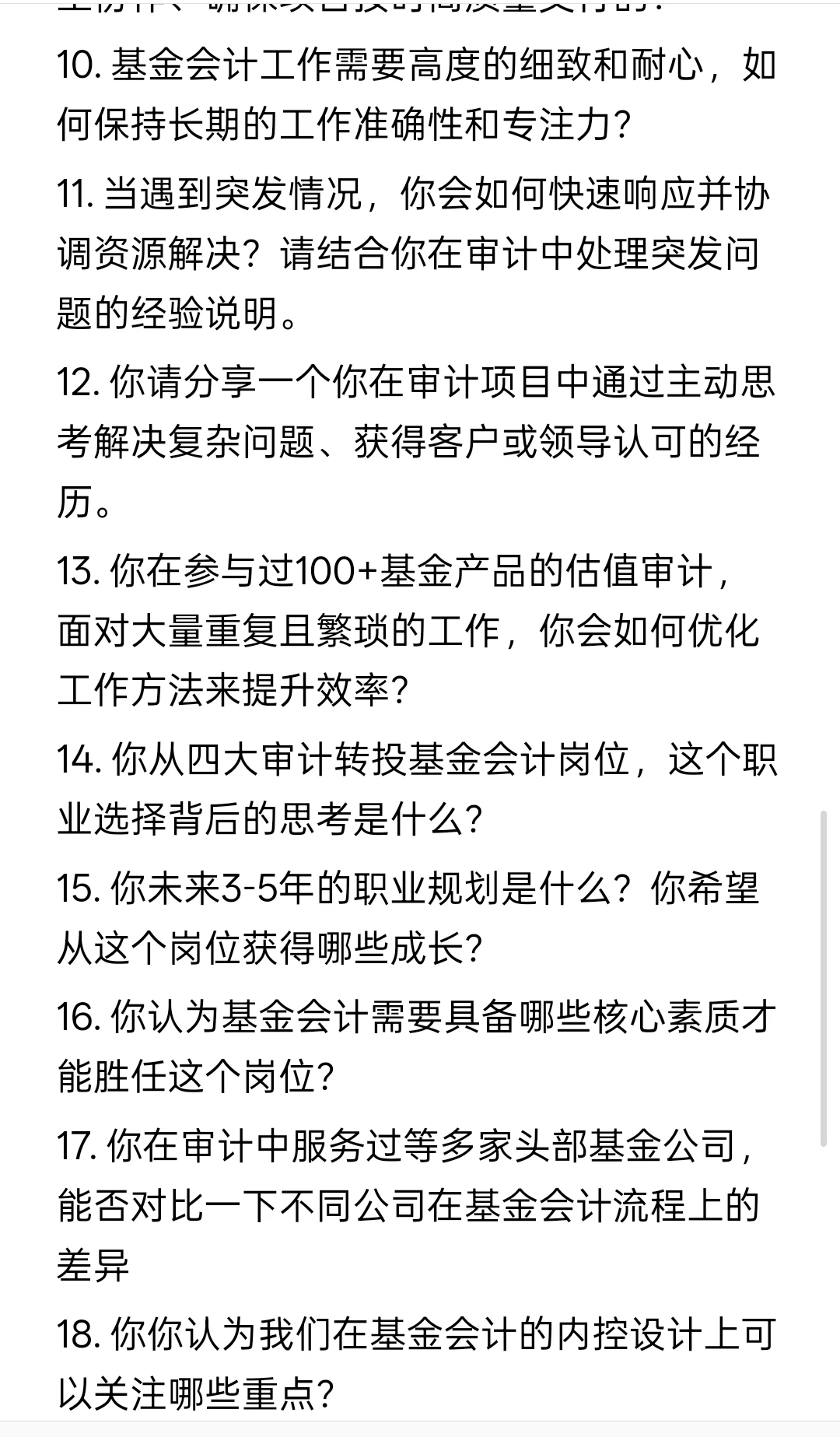 14. 你从四大审计转投基金会计岗位,这个职业选择背后的思考是什么?