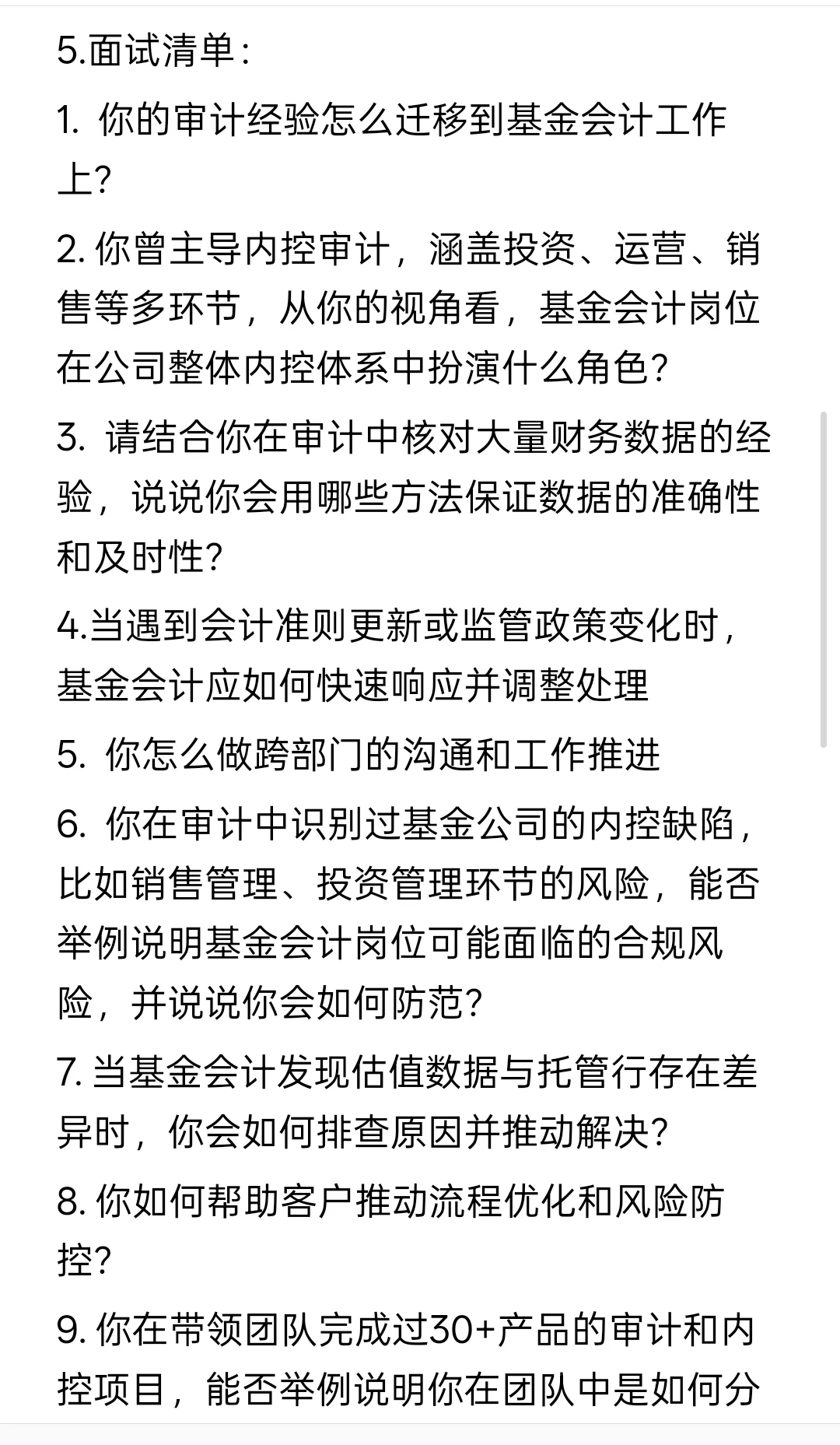 1. 你的审计经验怎么迁移到基金会计工作上?