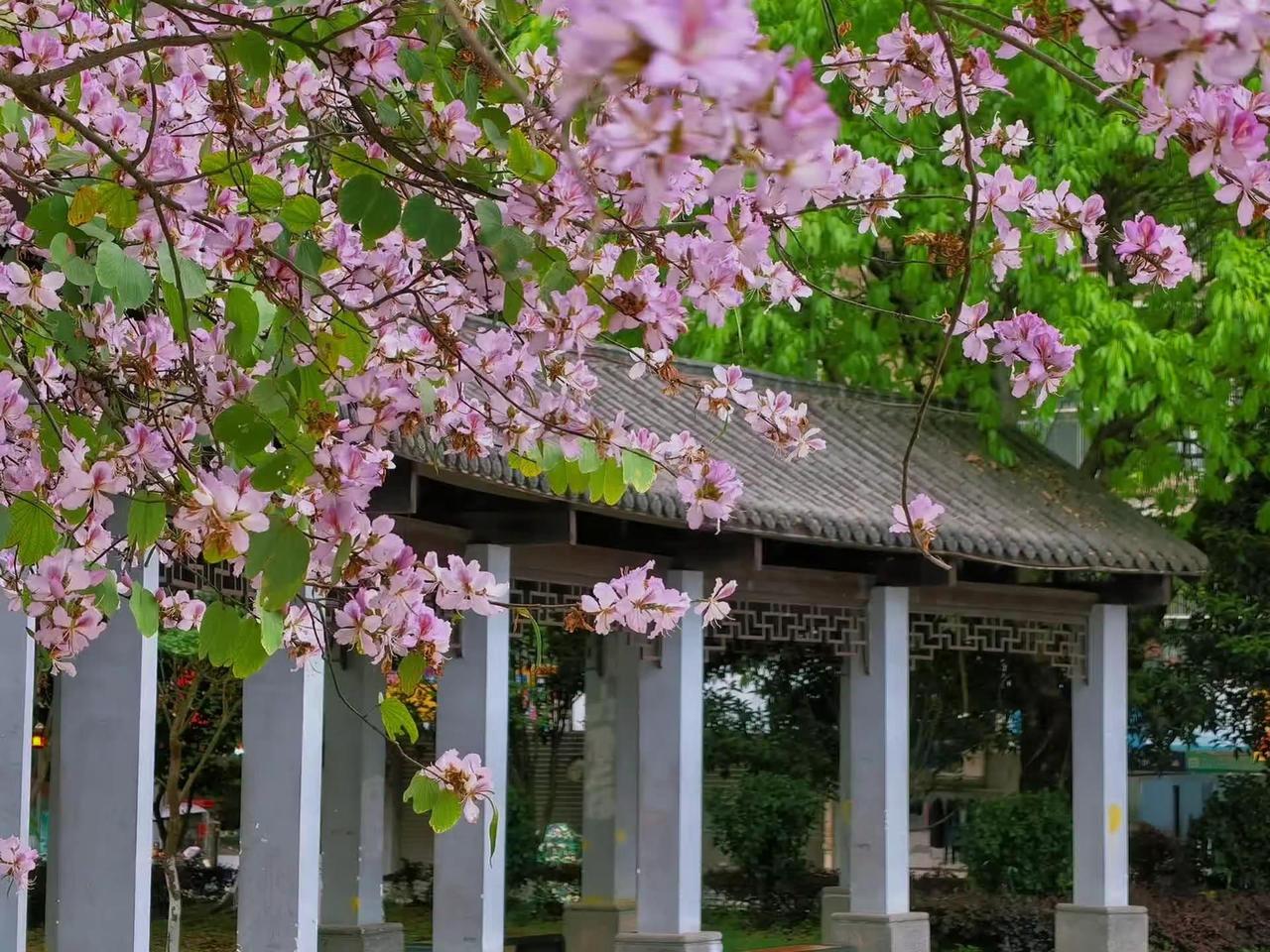 2026华为影像大赛|你参加了吗? XMAGE影像定格路边美景,个性色卡的色彩,拍出有个性春色动态,路人与古建,成了春天花瓣下的主题。拍摄设备:HUAWEI Pura80ultra拍摄地点:韶关曲江拍摄时间:2026/3/27