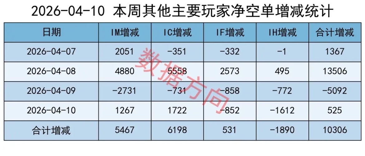 其他主要玩家,本周加空10306手;
