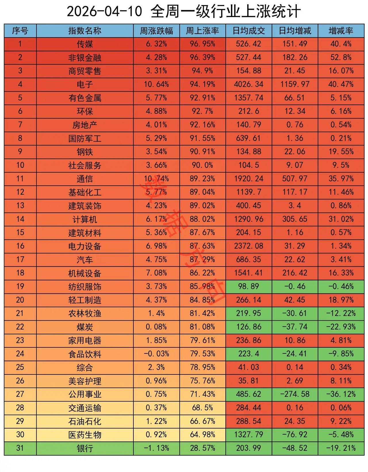 电子、通信,周涨幅都在10%以上