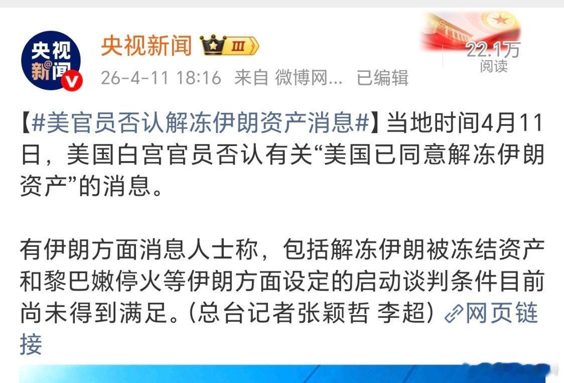 一会是美国统一解冻伊朗海外资产,一会是否认解封,现在都是各说各的,也不知道孰真孰