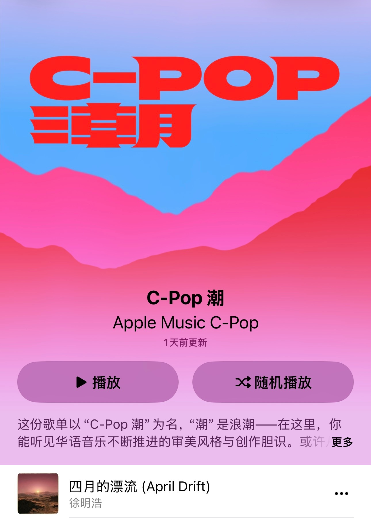徐明浩入选 Apple Music C-Pop 歌单专区封面版头,以「四月的漂流」开启 C-Pop 全新音乐新篇🎵