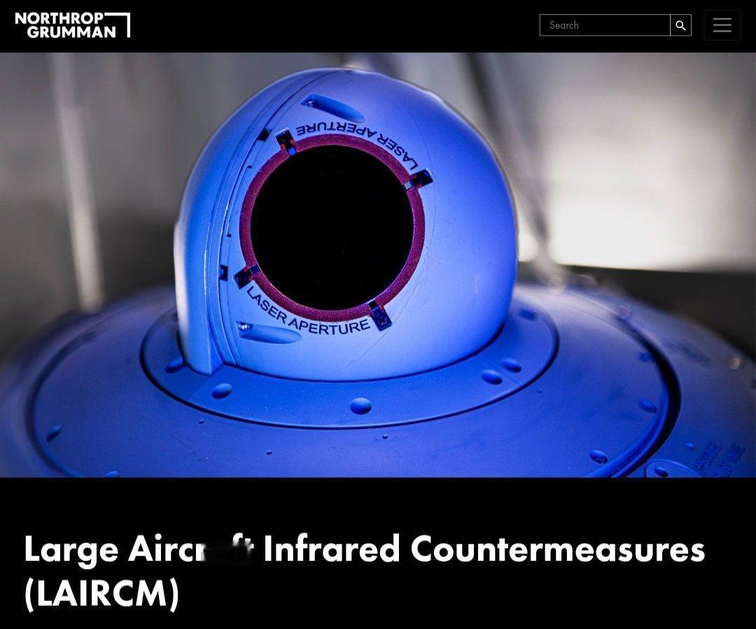 据报道,伊朗军队缴获了一套美国制造的AN/AAQ-24激光红外对抗系统。AN/AAQ-24由诺斯罗普·格鲁曼公司研制,是一种基于激光的红外对抗系统,旨在保护C-130、C-17和CH-47“支奴干”等大型飞机。