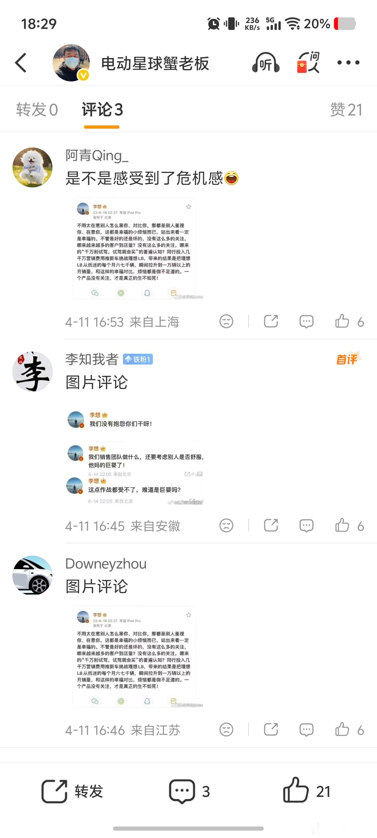 李想朋友圈飙脏话李想朋友圈再发文李想发文称某品牌持续拉踩