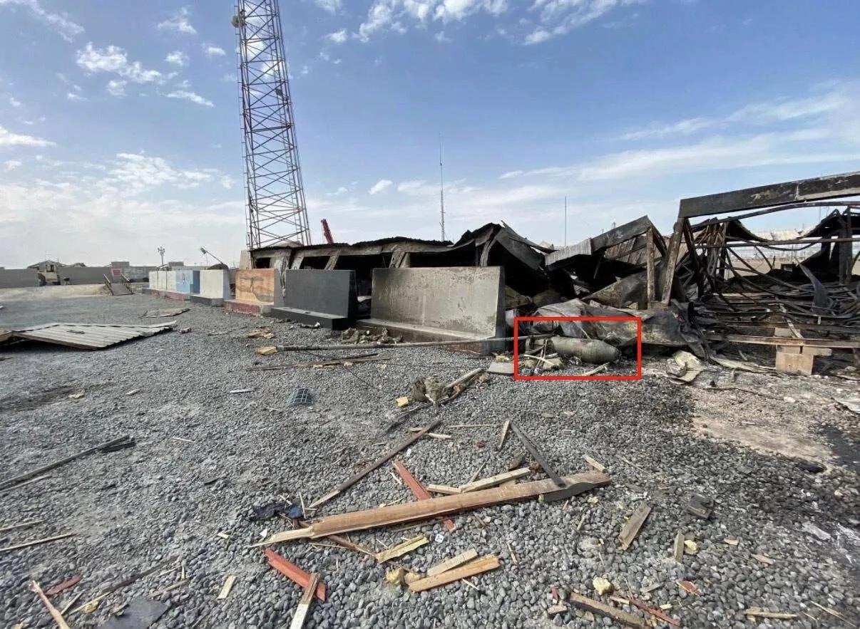 伊朗空军的突击作战也有得手的时候。开战初期的3月1日,美军驻科威特舒艾巴港口的第103后勤指挥部(C-103)被炸,美军阵亡6人、伤20人。美方众口一词,都说是伊朗“小摩托”炸的。但是美国CNN记者实地采访这个基地时,发现在现场残留有一枚俄制FAB-500或ODAB-500炸弹(图6)。科威特空军不装备俄制武器,所以这枚俄制炸弹只会是伊朗空军战机投掷的。当时伊朗战机投掷了2枚炸弹,其中1枚爆炸,另1枚未爆,否则美军死伤还会大幅增加。
