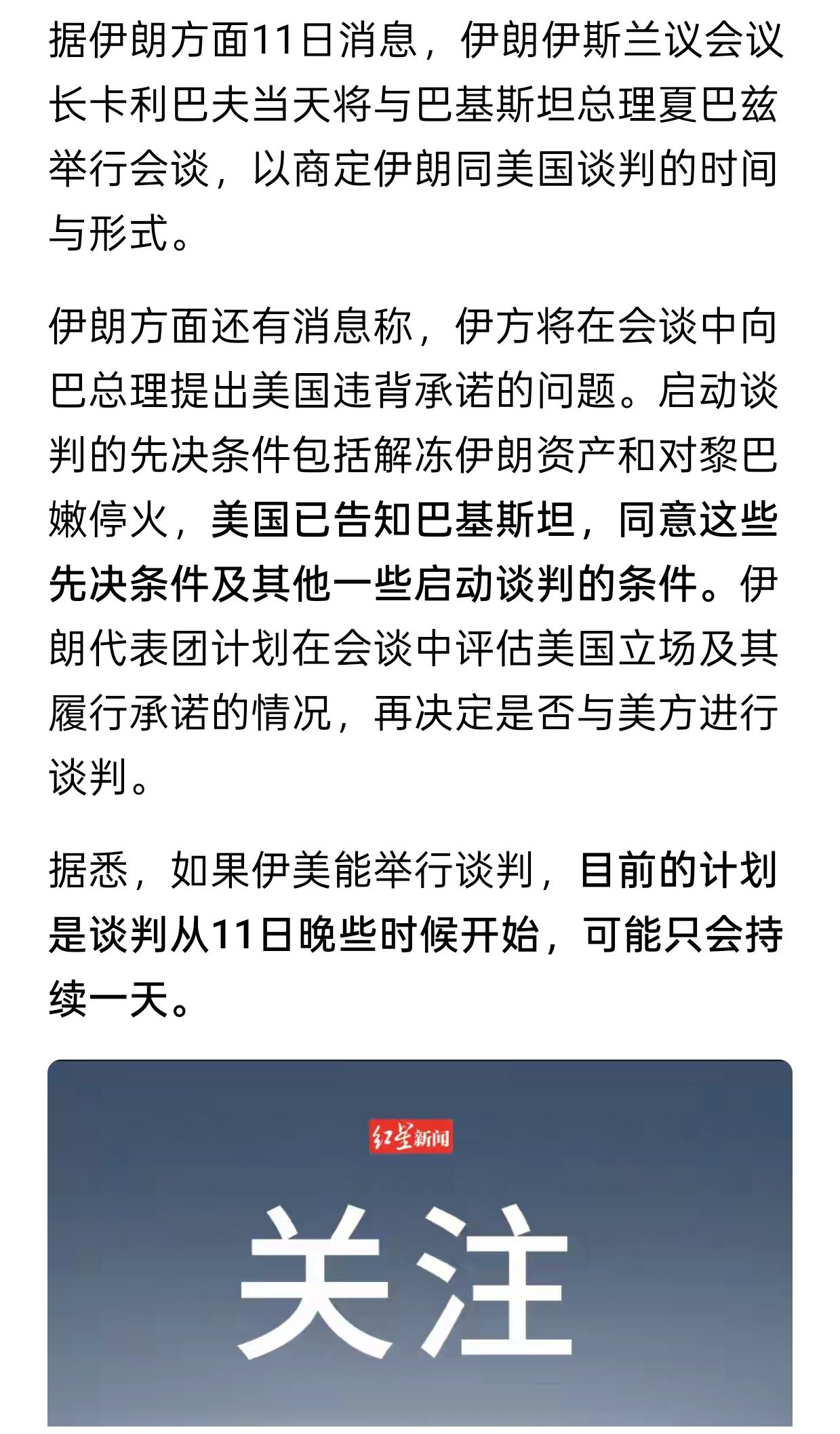 美伊大消息。今天周六巴基斯坦,已经明确确认美伊会谈,将于今晚凌晨正式谈判。据外围消息面,美已同意解除伊朗被冻结的资产和停止打击黎巴嫩,可见双方都是带着诚意来的,
