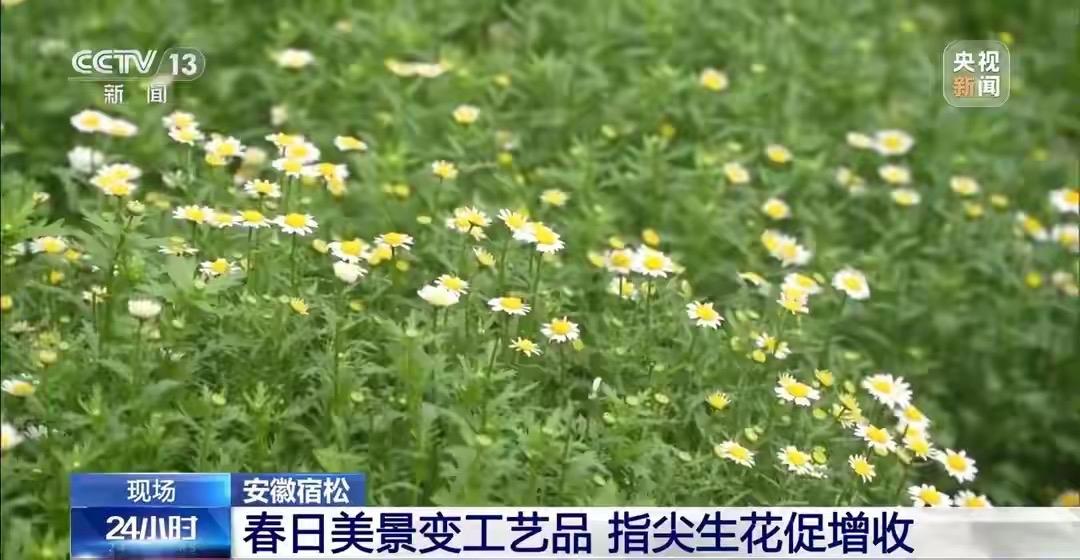 安徽宿松的村民更有巧思,把春日鲜花变成了永不凋零的财富。田间白晶菊清新动人,村民巧手采摘后,经过烘干、造型、装裱等工序,化身精美干花工艺品。200多种花卉、超4000万片年产能,通过电商远销海内外,让鲜花身价翻倍。