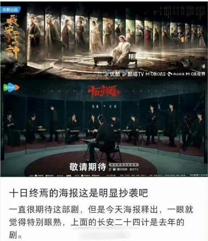 有网友说感觉肖战主演的《十日终焉》的海报,跟成毅主演的《长安二十四计》海报相似度