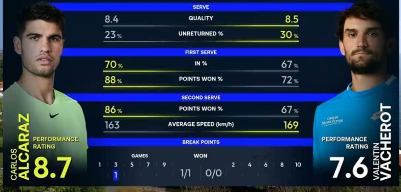 阿卡拉斯6-4瓦舍罗 离蒙特卡洛决赛还有一盘。 2026首次辛卡决即将来临。