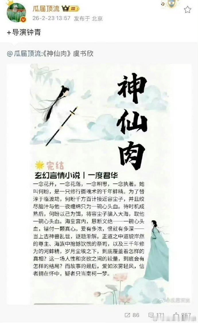 神仙肉开机要提前了,🍉组说五月底开机!虞书欣、何与二搭,有期待的吗?