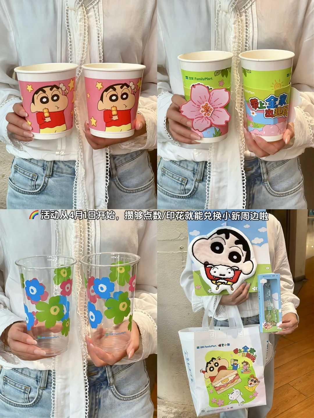 🌈对了!这次的周边真的萌到心巴上了🥹 可可爱爱的小新手机链(华东限定)、软fufu擦手巾、搞怪IP眼镜还有百搭联名包包,每一款都长在我的审美上啊啊啊!!!活动从4月1日开始,攒够点数/印花就能兑换小新周边啦!
