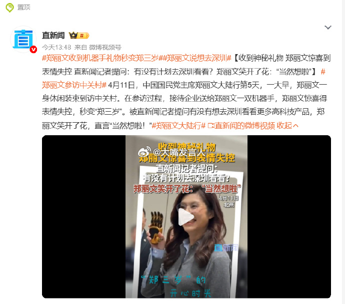 4月11日,参访中关村郑丽文收到机器手礼物秒变郑三岁 ,郑丽文参观故宫 ,郑丽文