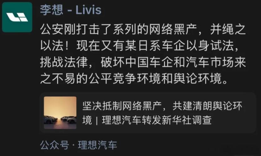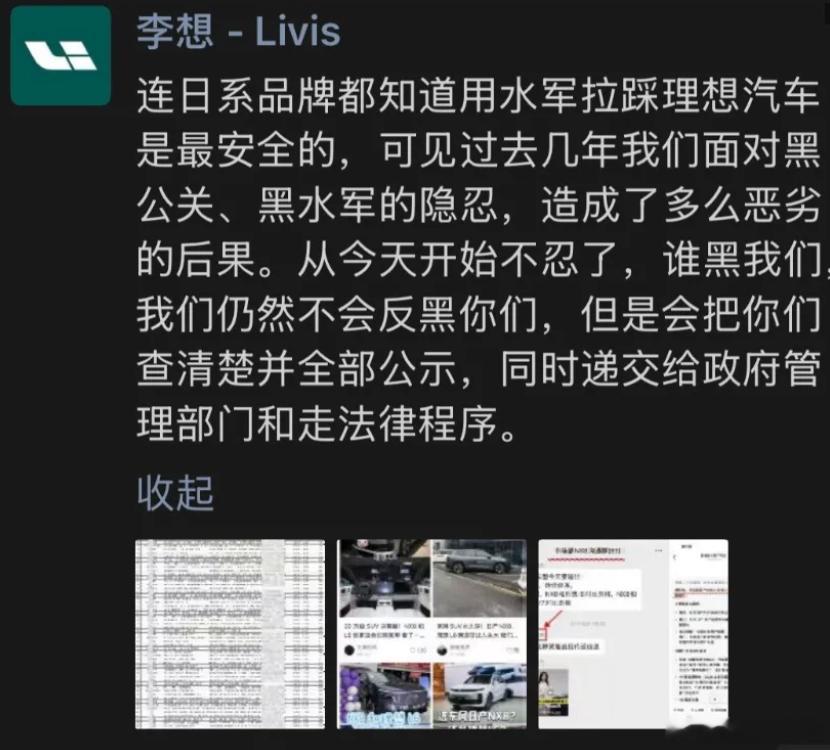 心魔已破, 那个做事不怂, 充满自信的李想回来了自2026年4月11日起,李想本人想通了,过去面对黑水军造成了恶劣后果,反击不是只有对泼黑水一条路,而是可以坚决查清与全部公示,并递交相关部门。图1 图2