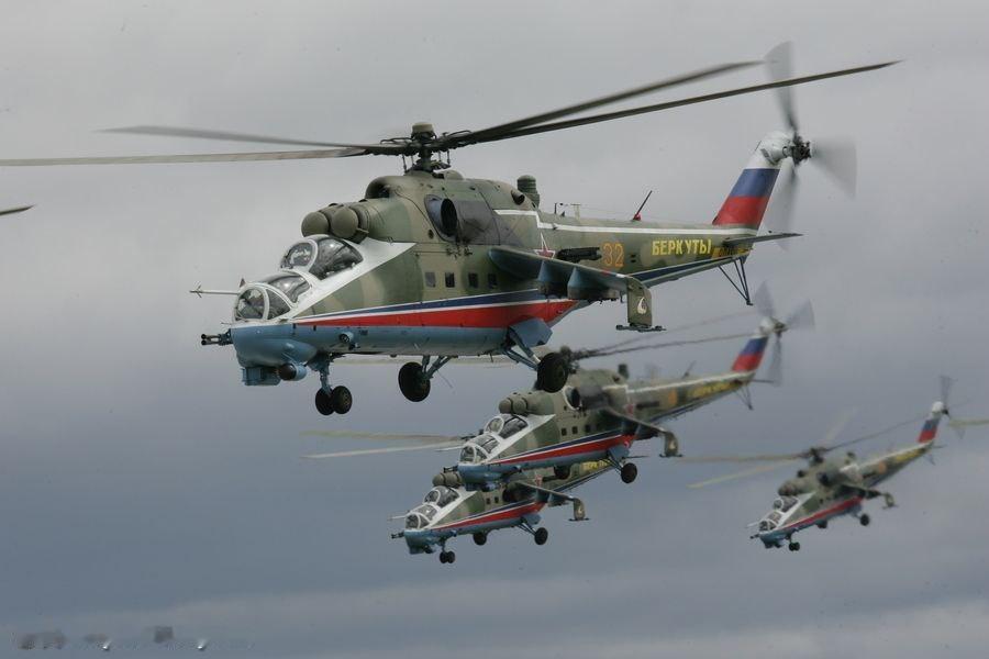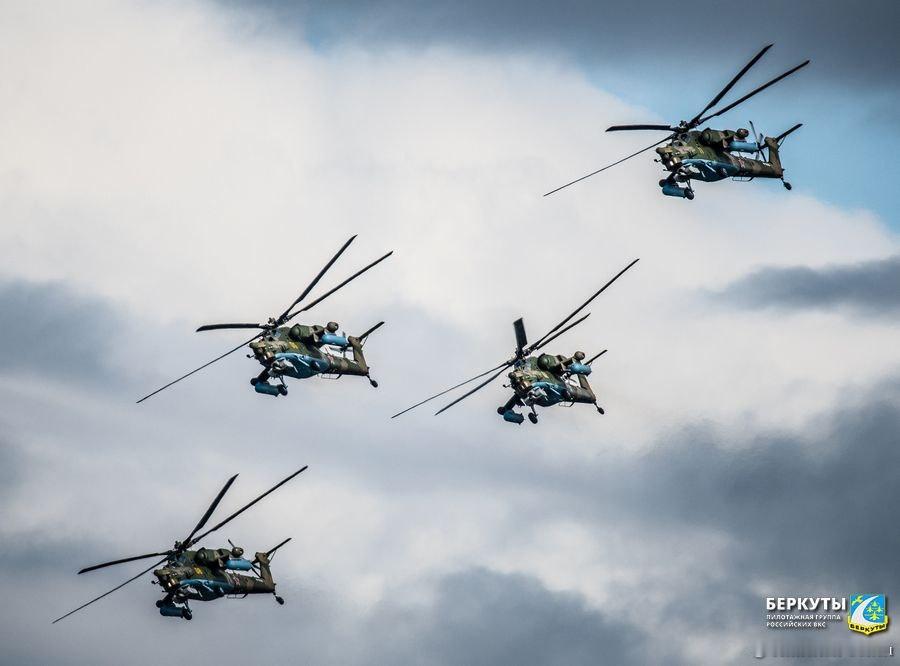 “金雕”特技飞行表演队官网介绍:托尔若克陆军航空兵战斗应用与飞行员再培训中心的“金雕”特技飞行队是俄罗斯唯一的直升机特技飞行队。也是世界上唯一一支使用武装直升机进行表演的特技飞行表演队(译者注:风雷飞行表演队是中国人民解放军陆军航空兵所属的武装直升机专业飞行表演队,装备多型武装直升机)。该飞行中队成立于1989年,而飞行队的成立日则定为1992年4月11日,即“金雕”进行首次特技飞行表演之日。