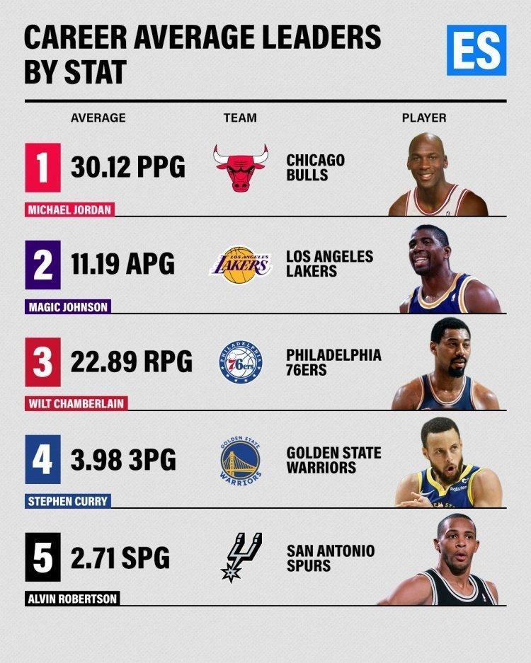 NBA历史各数据场均最高球员: