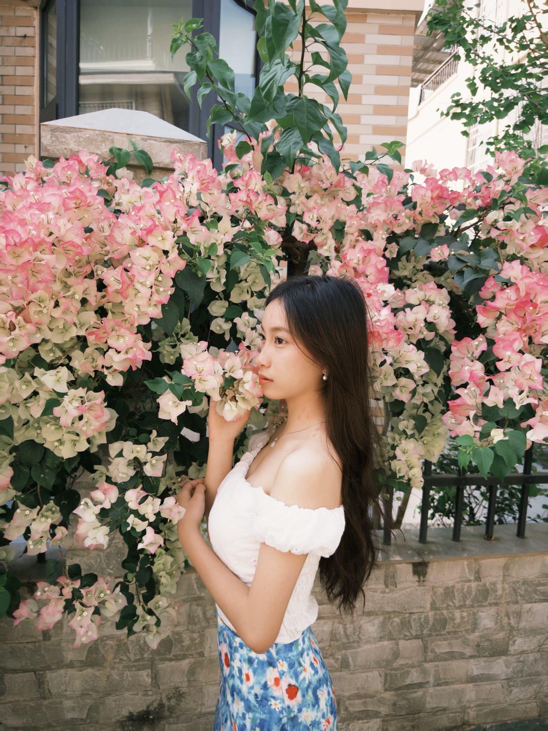 吊带裙简直是优雅与时尚的代名词!就像沈梦辰身着浅蓝碎花吊带长裙,在椰林沙滩的光影