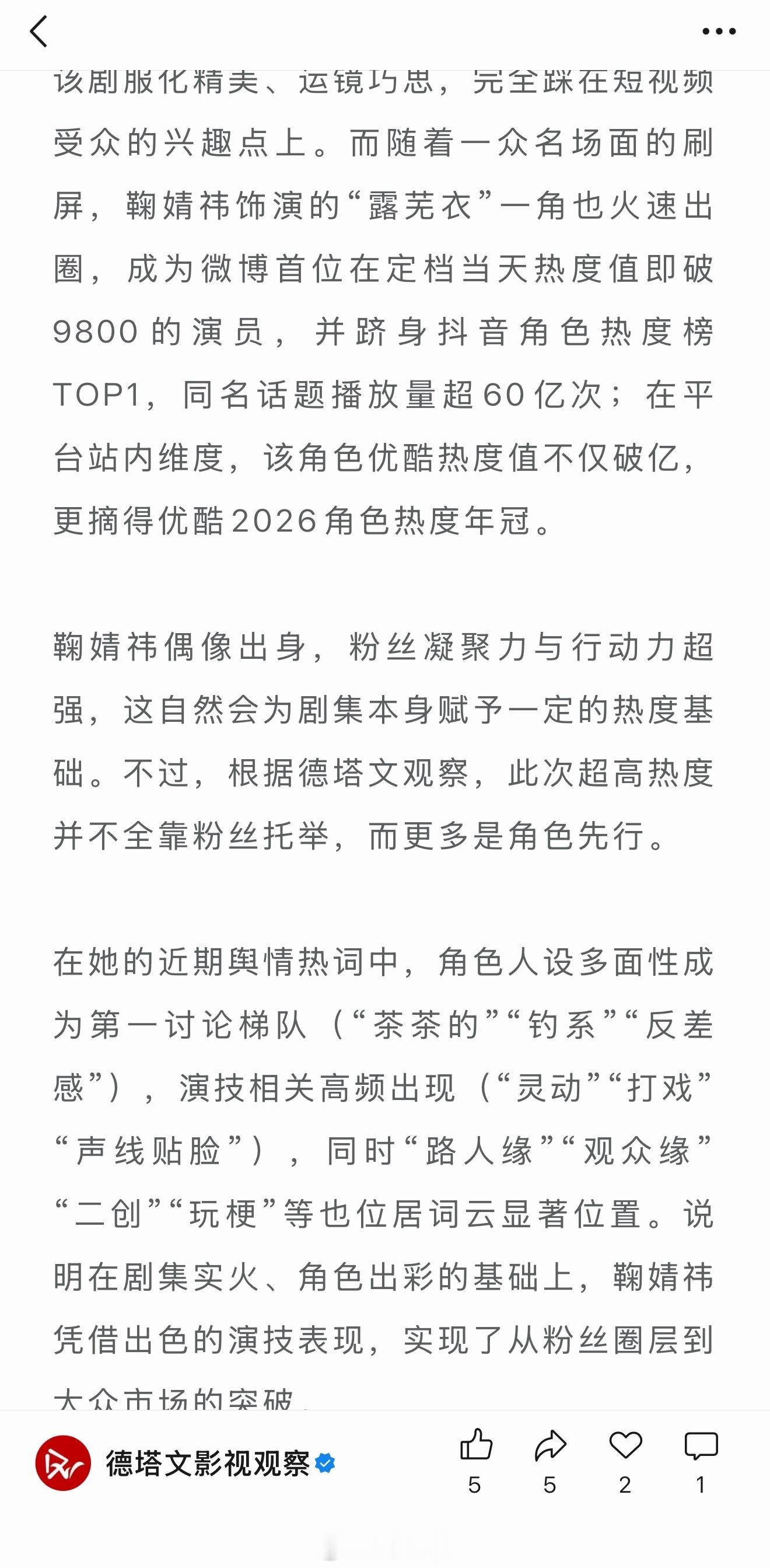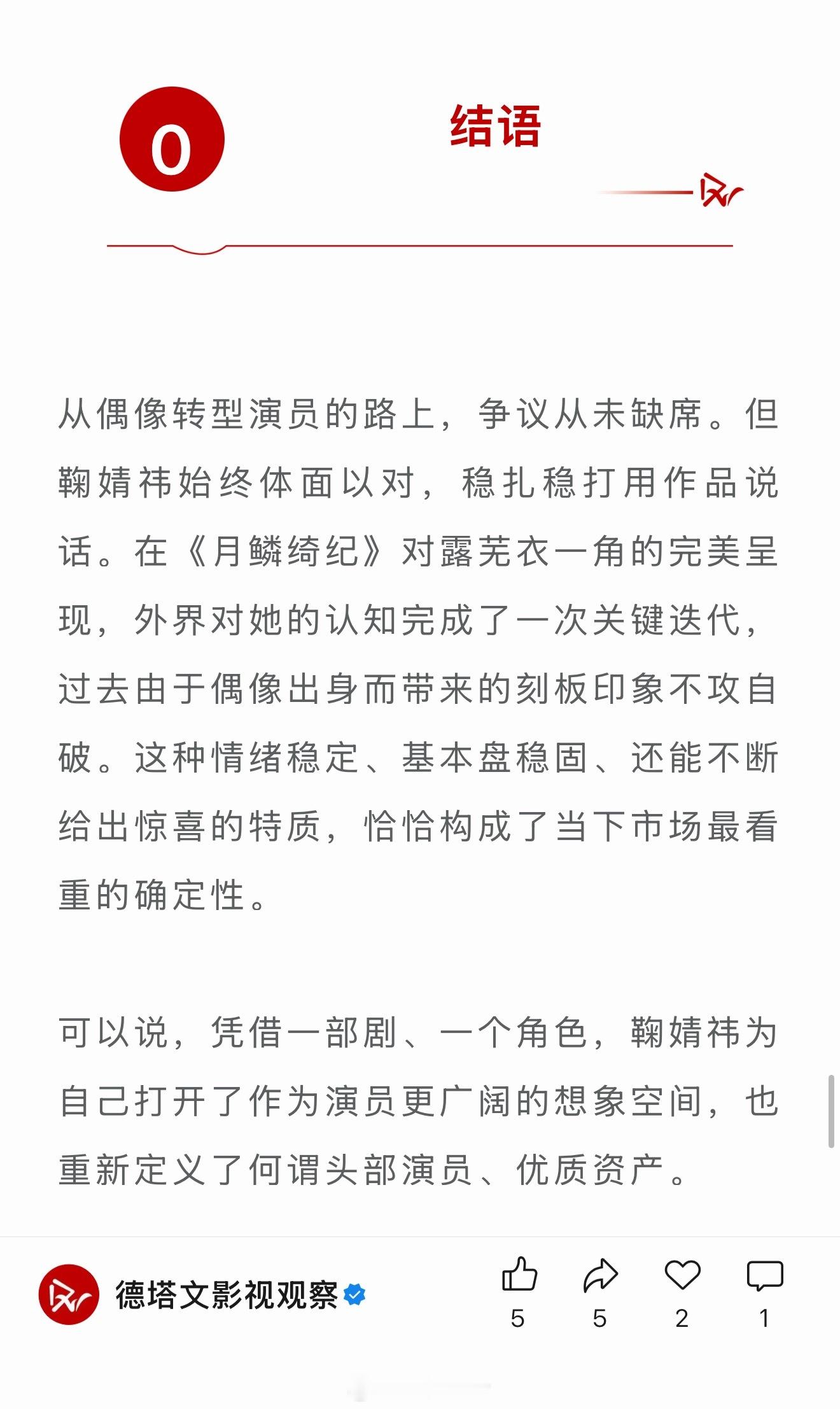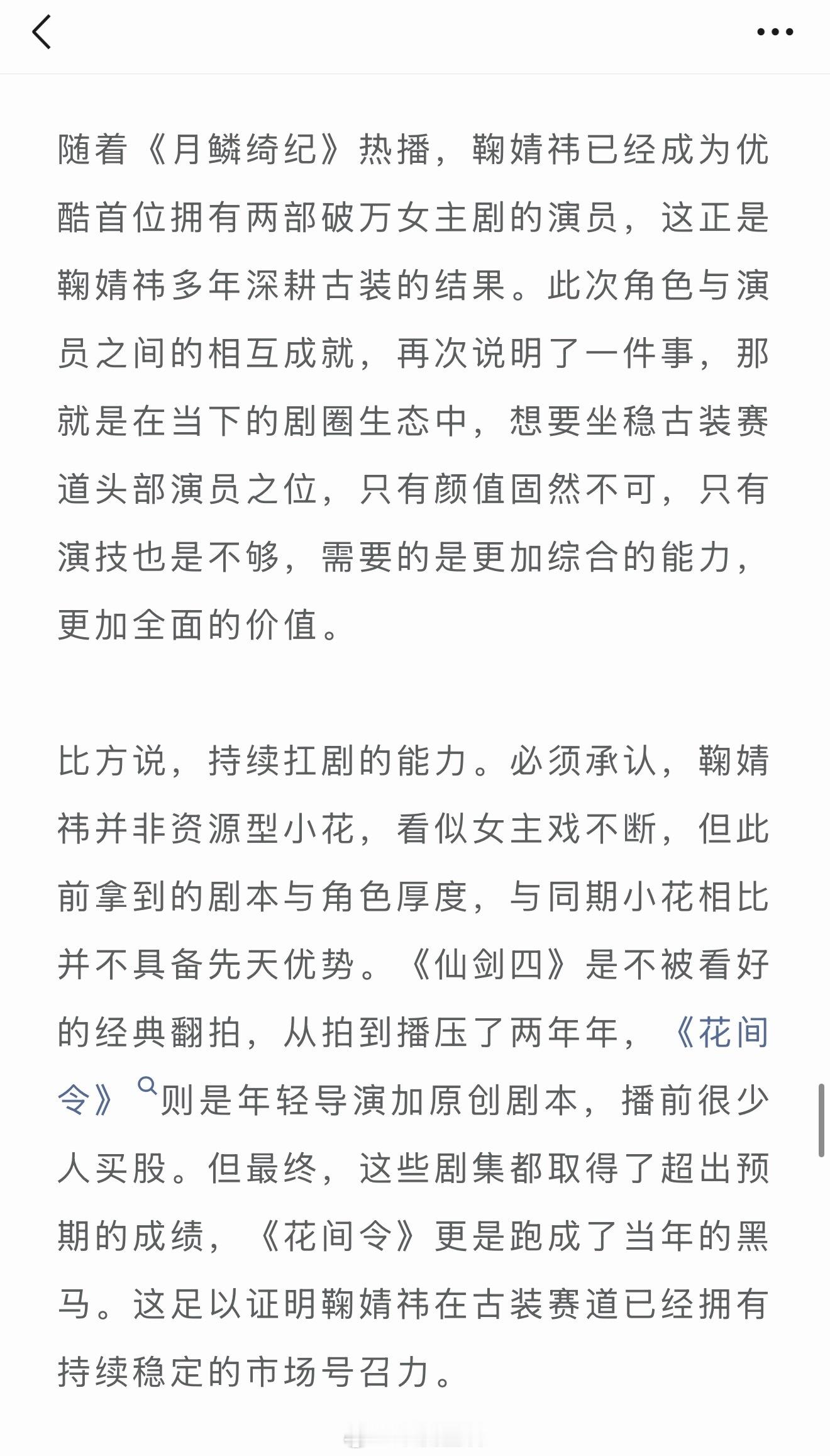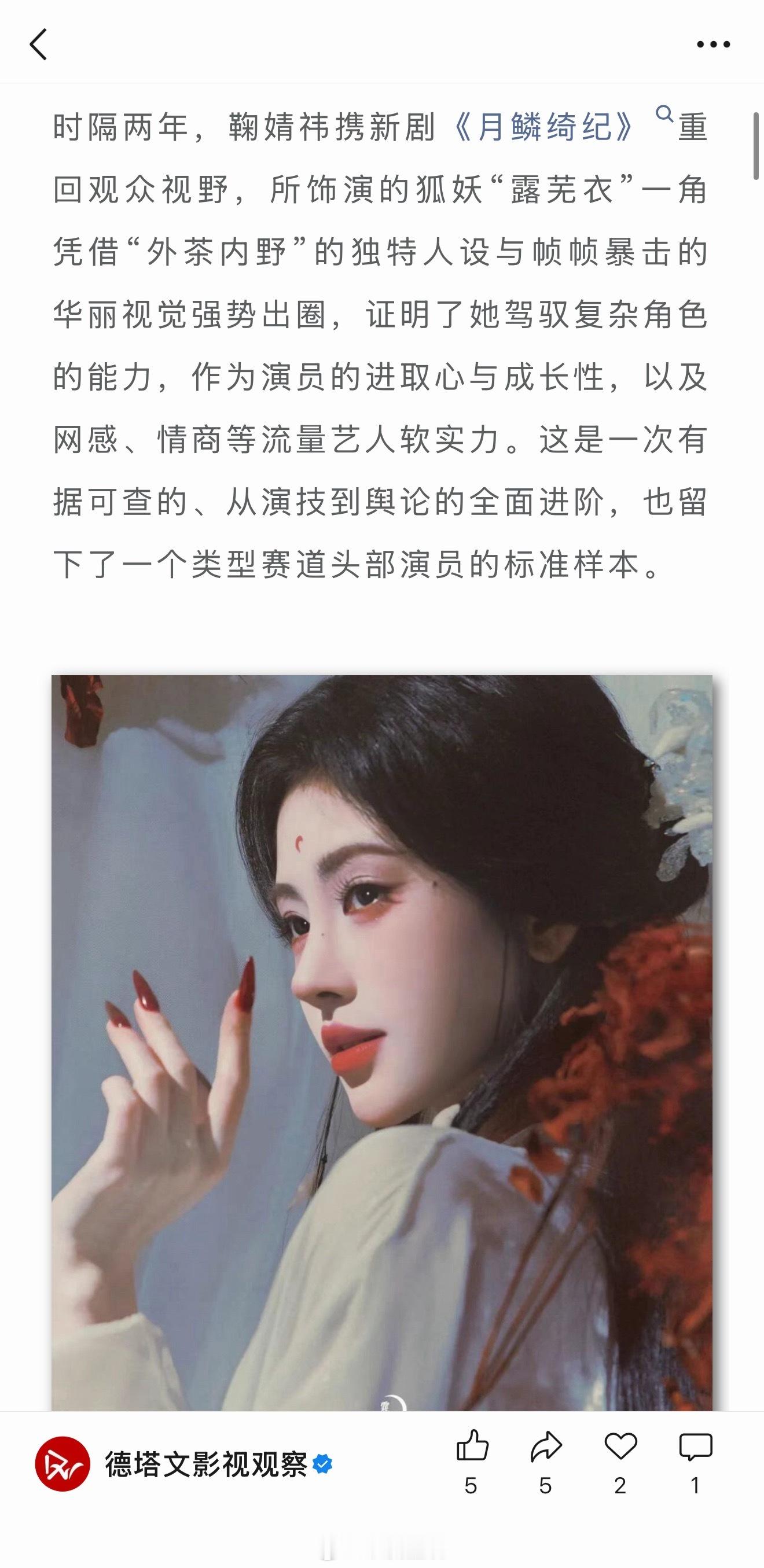 德塔文发文,《月鳞绮纪》的人设美学与鞠婧祎的有效进阶