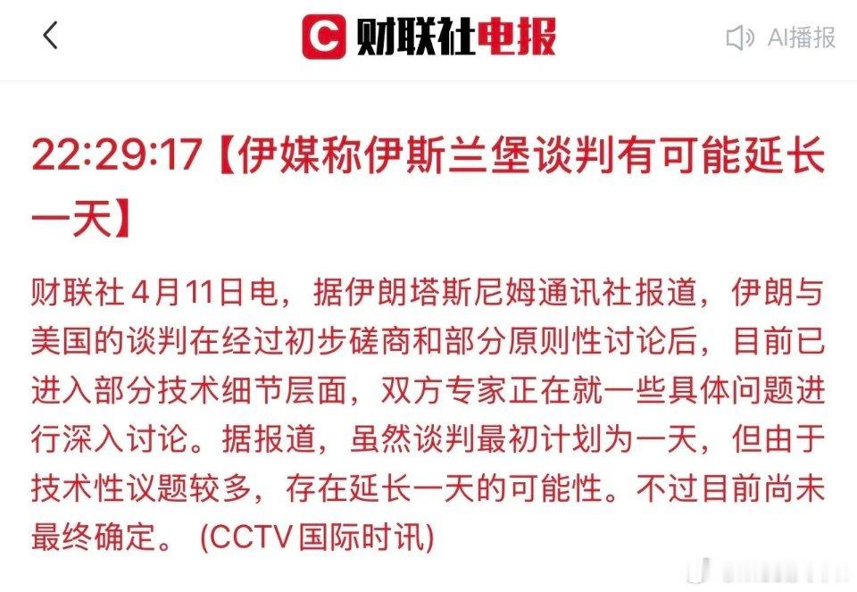 3、谈判有可能推迟一天,存在延长可能性,不过还没有最终确定;
