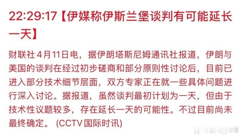 谈判有可能推迟一天,存在延长可能性,不过还没有最终确定;