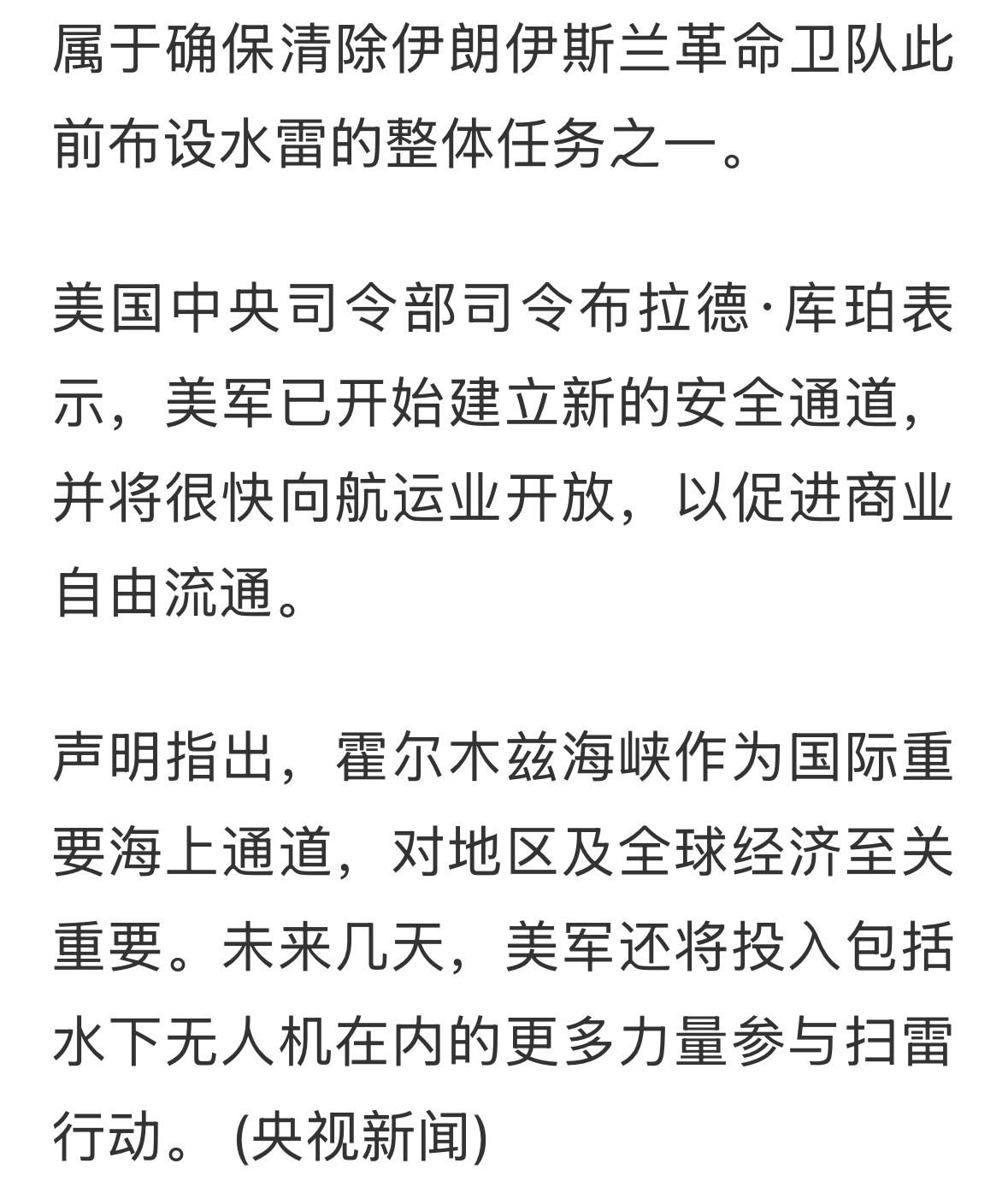 这个理由比较好,扫雷是一个长期任务,实质上,就控制了海峡,伊朗敢不敢发射导弹,把他驱逐出去?