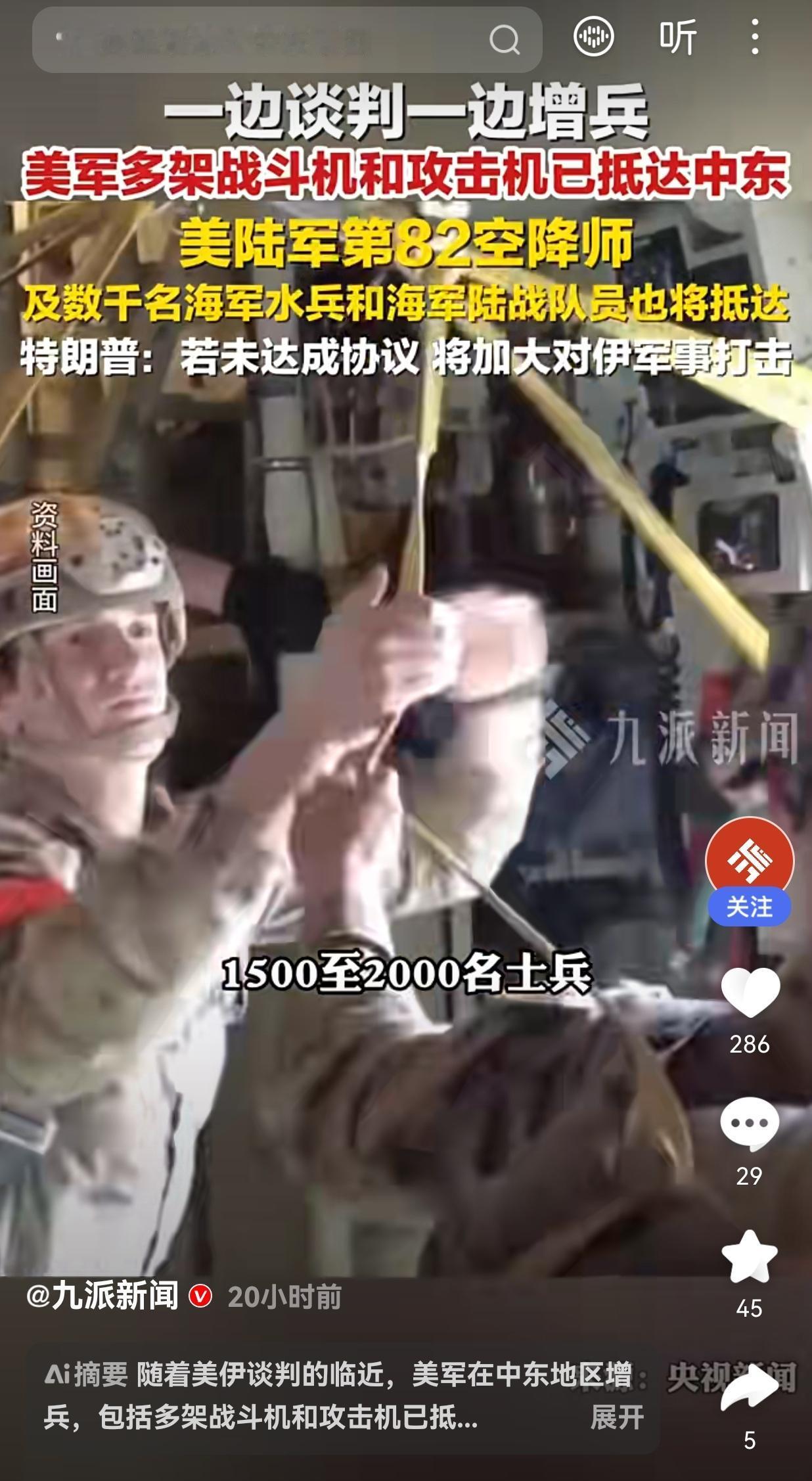 (5.)地面力量:第82空降师1500-2000名士兵已部署至科威特、约旦前沿基地,可48小时内完成跨区域投送。